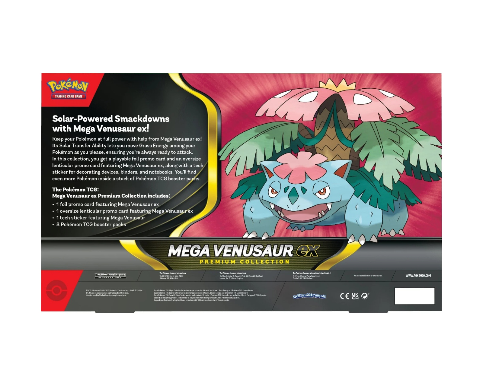 Max 1 per kund.Mega Venusaur ex Premium Collection är en samling produkter från Pokémon som innehåller en kombination av spelbara kort och samlingsobjekt. Samlingen inkluderar en foil promo kort som visar Mega Venusaur ex, ett stort lentikulärt promo kort av samma figur samt en teknisk klistermärke för dekoration. Detta paket är idealiskt för gamers som är intresserade av att förstärka sina kortlekar med kraftfulla kort och samla unika objekt. Det finns även en stapel av Pokémon TCG booster paket för att utöka samlingen.