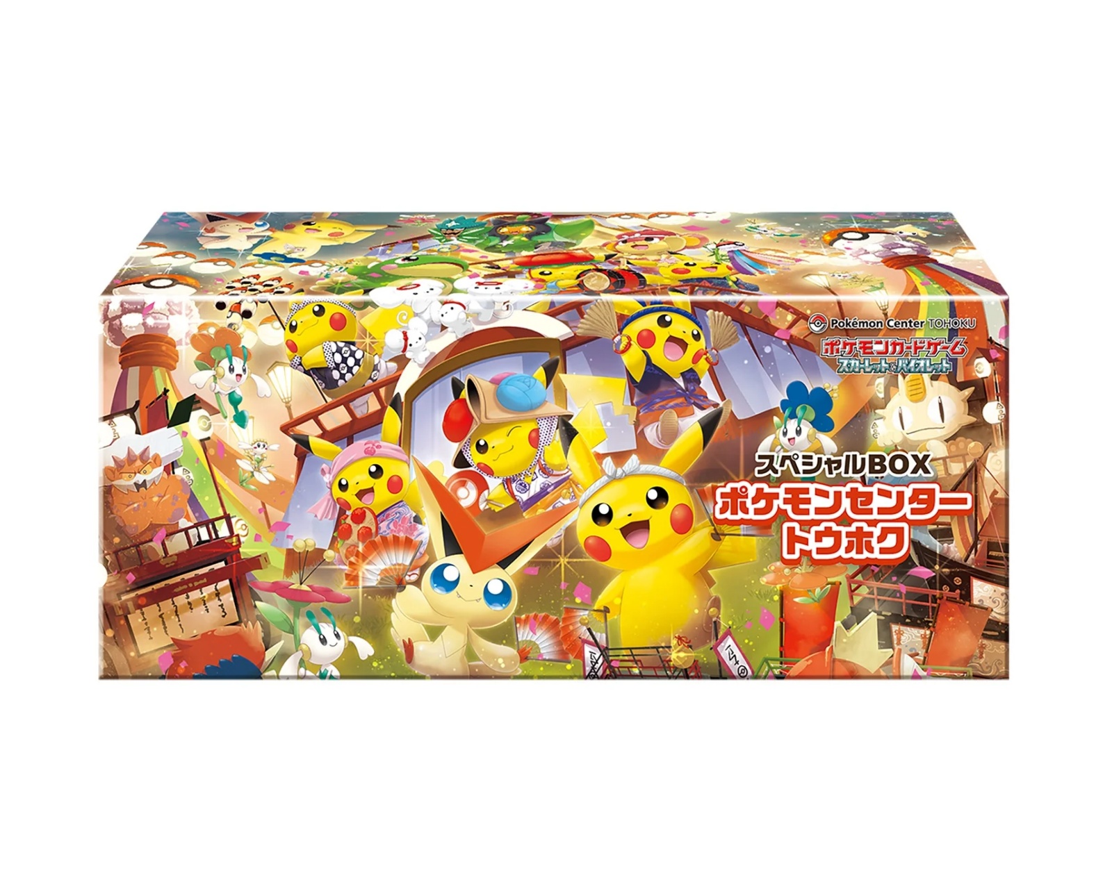 Pikachu Special Box Pokémon Center - Tohoku är en samling av exklusiva Pokémon-produkter som ger både spelare och samlare något extra. Denna låda innehåller ett Holofoil-kort med Tohoku Pikachu-motiv och en kortlåda från Pokémon Center Tohoku R. Dessutom medföljer 64 deck sleeves samt en deck case, vilket gör den här produkten idealisk för både spel och förvaring av kort.Denna samlarbox är utformad för att hålla dina kort i utmärkt skick och erbjuder en kombination av funktionalitet och estetik. Med Holofoil-kortet får du en upplyftande komponent som sticker ut i varje samling. Deck sleeves skyddar korten från slitage samtidigt som de ger ett professionellt utseende. Förvaring med deck case säkerställer att alla komponenter förblir tillsammans och i gott skick, vilket är en praktisk lösning för både turneringar och casual-spel.