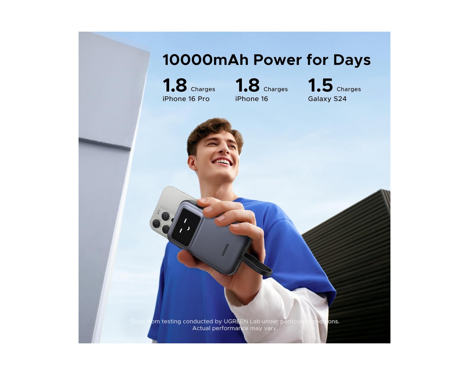 Uno powerbank med inbyggd USB-C kabel och en kapacitet på 10,000 mAh är den perfekta lösningen för laddning när du är på språng. Den är designad för att vara både kraftfull och praktisk, med flera laddningsmöjligheter för olika enheter.