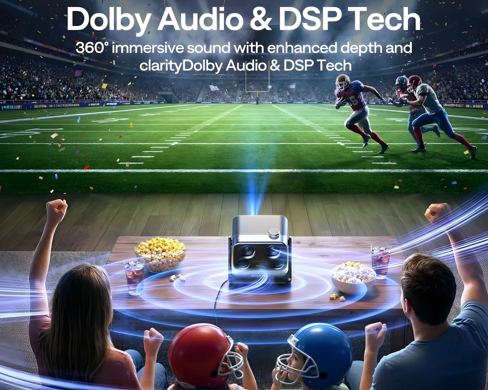 En kompakt multimedia-projektor från Aurzen som möjliggör smidig visning av innehåll på en stor skärm, oavsett om det är hemma eller utomhus. Enheten körs med Google TV, vilket ger direkt tillgång till tusentals strömningstjänster utan behov av externa enheter. Med en ljusstyrka på 500 ANSI lumen och HDR10-teknik förbättras kontrasten och bilddetaljerna.Projektorn är utrustad med ToF-teknologi (Time of Flight) som möjliggör automatisk fokusering och realtidsjustering av bilden, vilket innebär att installationen går snabbt och enkelt. 20W inbyggda högtalare med stöd för Dolby Audio skapar en rik ljudupplevelse, och den omfattande trådlösa anslutningen innebär goda möjligheter för streamande.