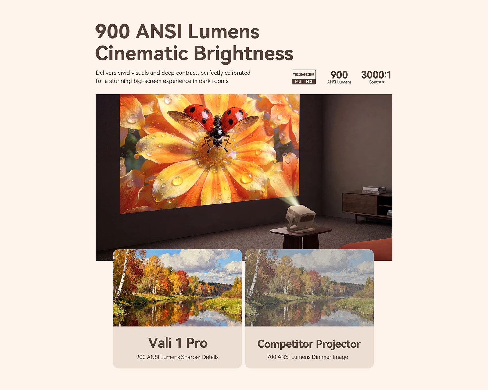 - 900 ANSI lumen ljusstyrka
