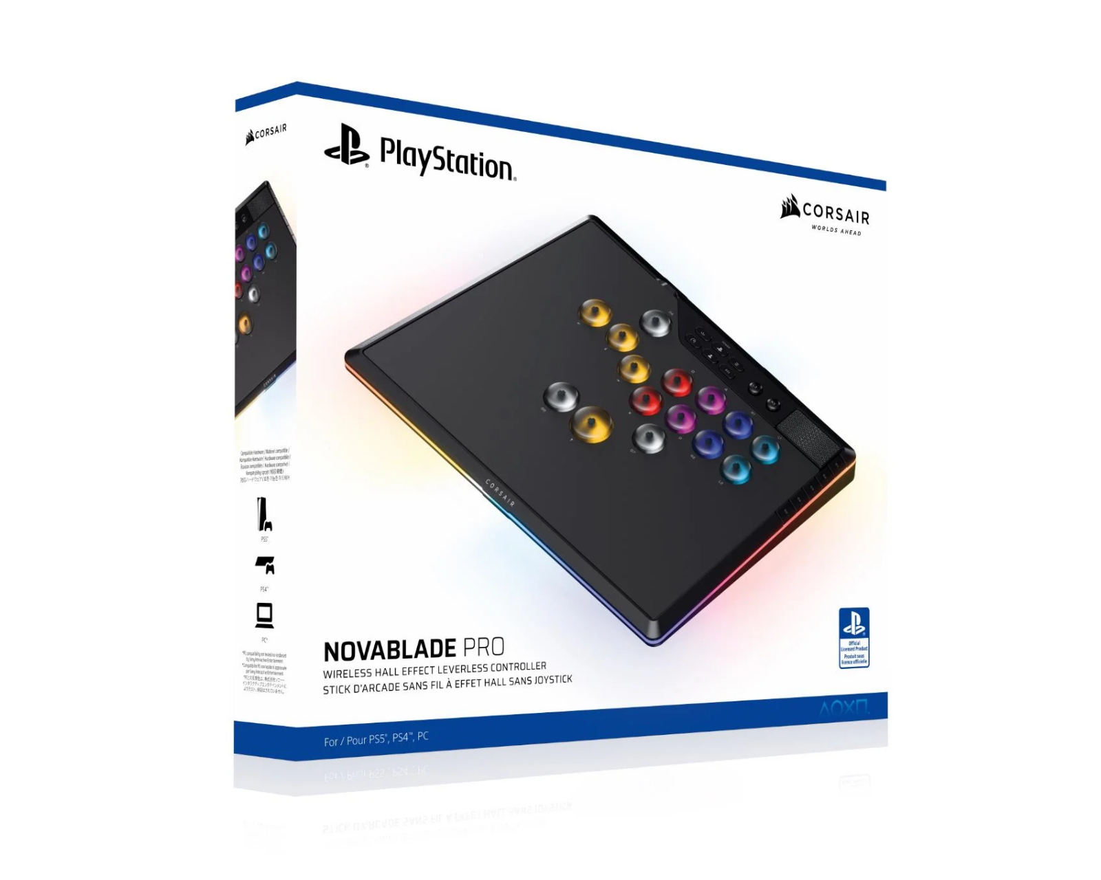 Novablade Pro från Corsair är en trådlös arcade controller med Hall Effect-teknologi, utformad för att ge gamers en fördel i kampen genom snabbare och mer precis kontroll. Den erbjuder 15 justerbara knappar med 8 programmerbara G-tangenter, och är kompatibel med PS5, PS4 och PC. Med tri-mode anslutning kan användaren enkelt växla mellan trådad, 2.4GHz trådlös och Bluetooth-anslutning.Kontrollern är utrustad med CORSAIR MGX Hyperdrive Hall Effect-magnetbrytare som har en livslängd på upp till 150 miljoner knapptryck. Denna konstruktion ger stabilitet och precision med en unik dubbelrälsdesign som försäkrar att användaren får en smidig och wobble-fri tryckkänsla. Justerbara aktiveringspunkter kan ställas in mellan 0.1mm och 4.0mm, vilket ger gamers möjlighet att anpassa känslan efter personliga preferenser och spelformer.