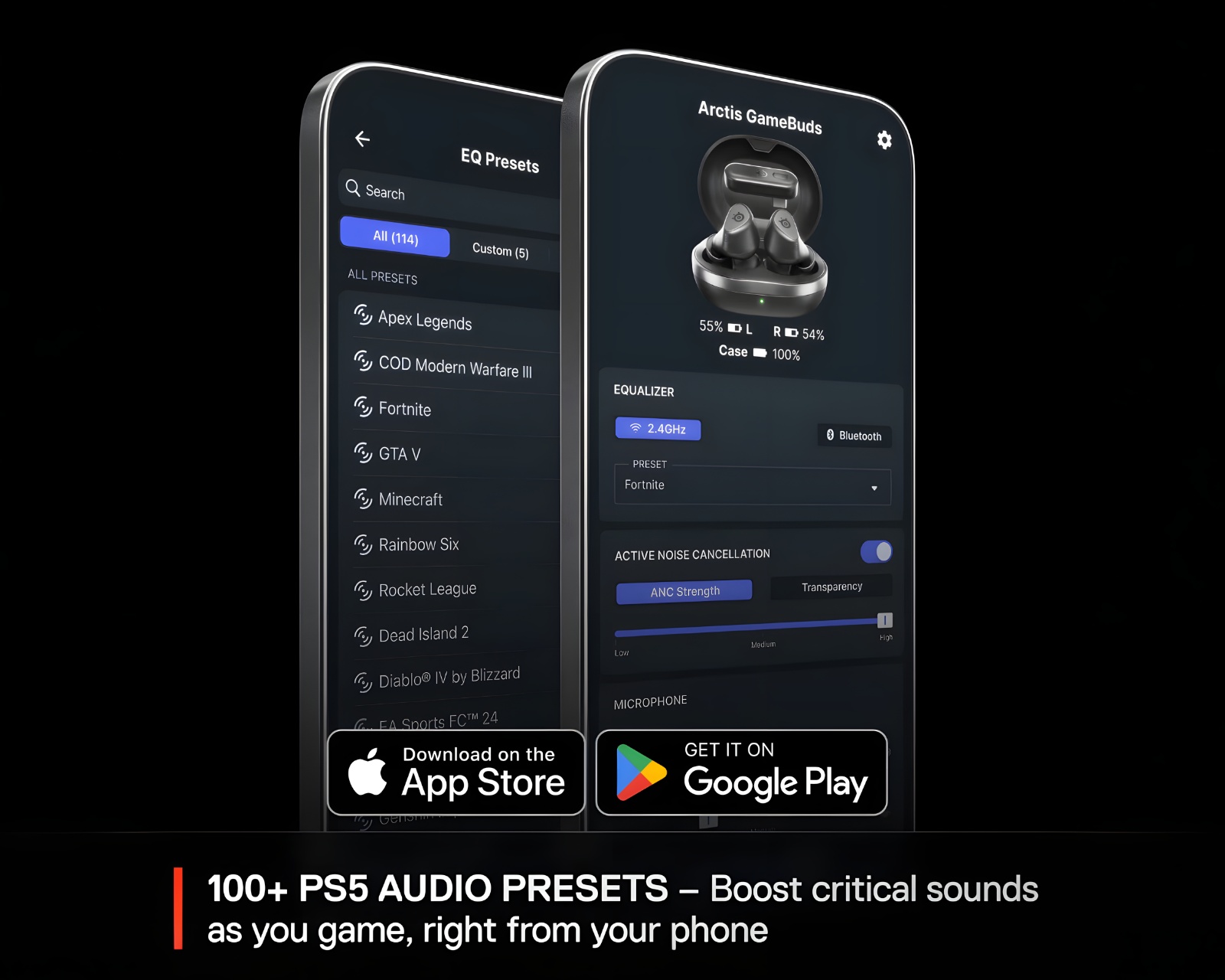 Arctis GameBuds är högkvalitativa in-ear monitor (IEM) hörlurar, skapade för spelare som värdesätter en uppslukande ljudupplevelse. Med en bekväm passform och exceptionell ljudklarhet förhöjer dessa hörlurar dina spelsessioner, så att du kan uppfatta varje detalj och njuta av en verkligt engagerande upplevelse.