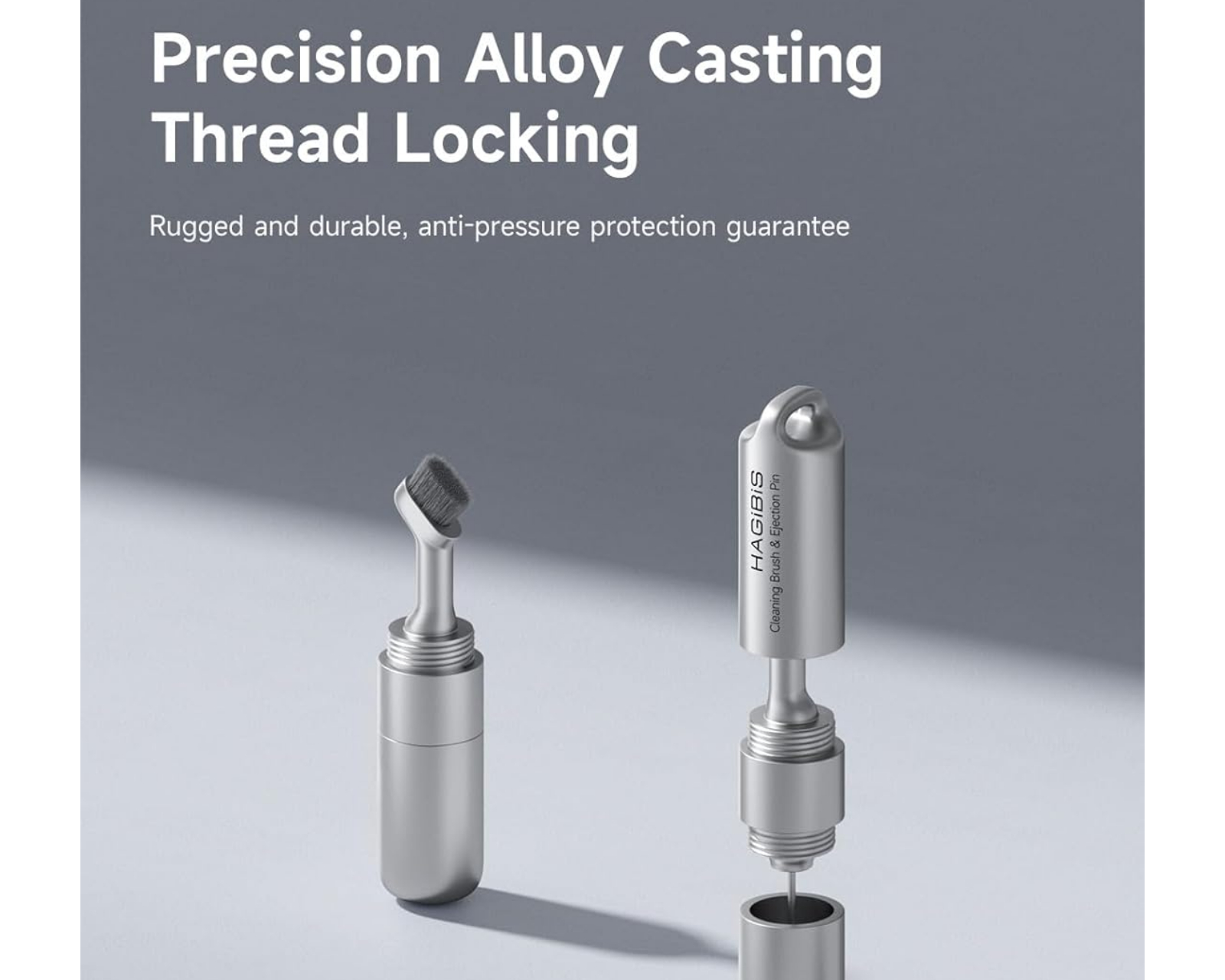 Hagibis SIM-kortutmatningsverktyg är en praktisk EDC (Everyday Carry) lösning som kombinerar en SIM-kortutmatningsverktyg och en rengöringspenna i ett. Denna 2-i-1-enhet är idealisk för samtliga mobiltelefonmodeller och möjliggör enkel öppning och borttagning av SIM-kortet. Verktyget är även utrustat med en rengöringsborste för effektiv borttagning av damm och smuts.Hagibis CP02 är tillverkat av högkvalitativt metalllegering, vilket ger en lätt men hållbar konstruktion. Det har en spetsig botten design som gör det enkelt att öppna SIM-kortsluckor utan komplexitet. Den högdensitetsborsten är försedd med mjuka, tätt arrangerade borststrå för att noggrant rengöra hörlurar och laddportar utan att skada enheten. Dess kompakta och lätta design gör att det enkelt kan bäras på nyckelringar eller förvaras i fickan för bekväm åtkomst.