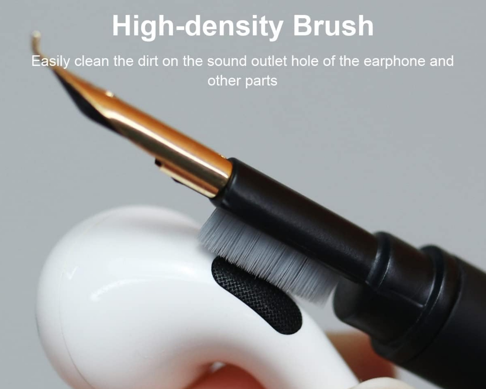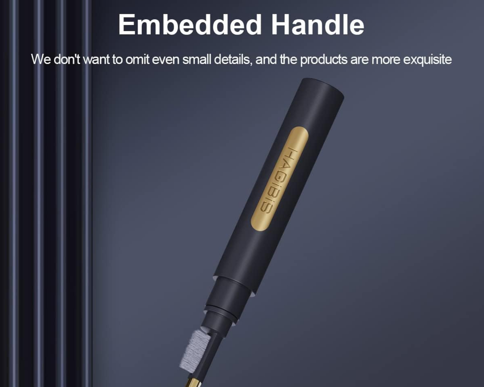 Hagibis rengöringspenna CP01 är ett rengöringsverktyg för AirPods samt andra Bluetooth-hörlurar och deras laddningsfodral. Den erbjuder en multifunktionell design med tre verktyg: en mjuk flockningssvamp, en högdensitetsborste samt en metallpenna. Produkten är tillverkad för att effektivt avlägsna damm och smuts från känsliga ytor på hörlurarna och fodralet. Den är lätt och kompakt med måtten 10,8 x 1,3 x 1,3 centimeter och väger endast 18 gram.Rengöringspennan är utformad med en separerad design som har dubbla huvuden, vilket möjliggör målmedveten rengöring av varierande ytor. Flockningssvampen är skonsam och effektiv för rengöring av det trådlösa laddningsfodralet. Borsten har hög densitet och är specialiserad för att avlägsna smuts från ljuduttag och andra känsliga områden. Den metalldel av pennan underlättar rengöring av hårdnackat damm och smuts som kan fastna på otillgängliga platser. Det inbäddade handtaget ger extra kontroll vid användning.