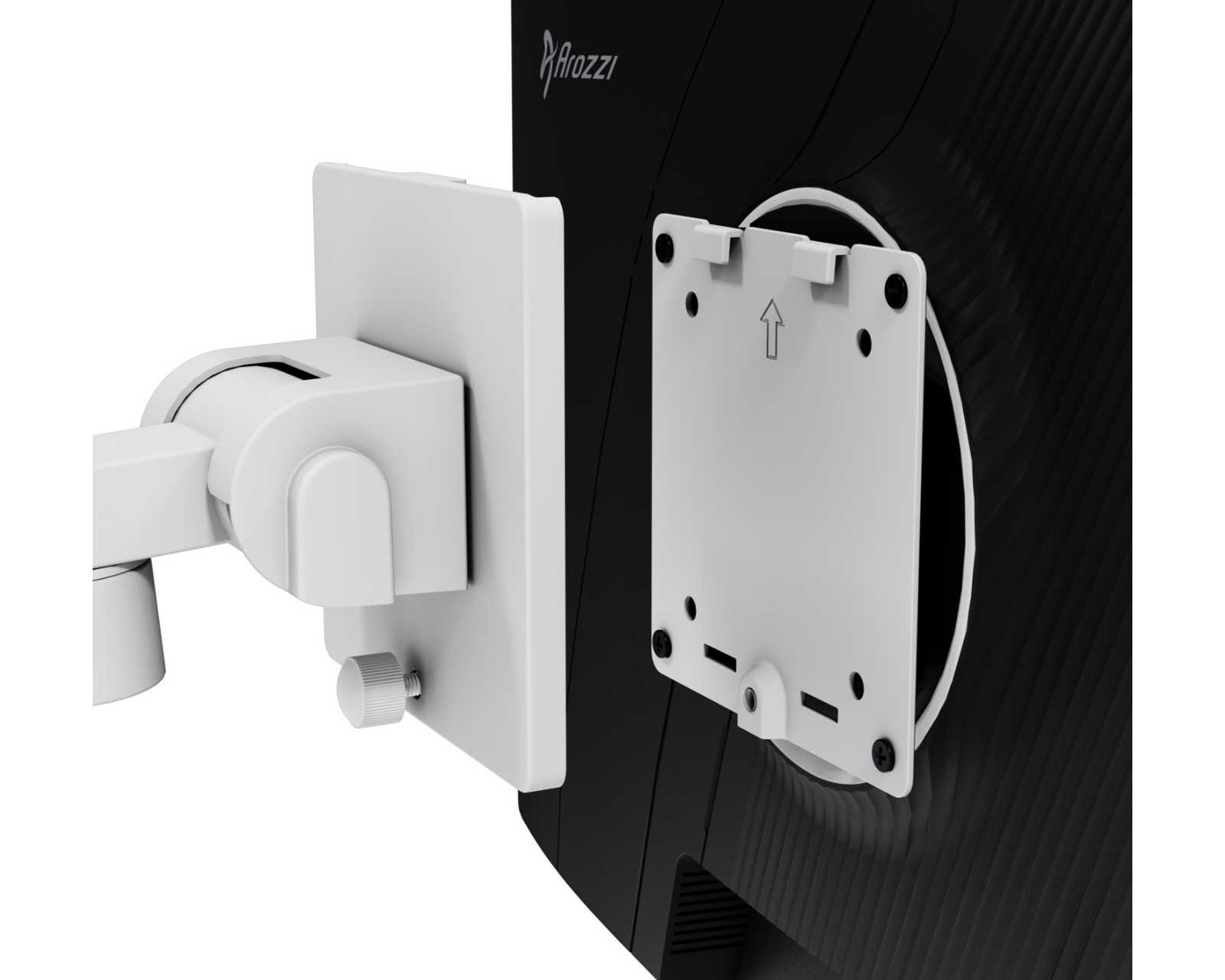 Alzare Neo PRO Skärmstativ är ett skärmstativ från Arozzi som erbjuder möjlighet att montera en skärm med en maximal vikt på 20 kg. Den vita designen ger en modern känsla, och den har flera justeringsmöjligheter, inklusive lutning och svängområde, vilket gör den idealisk för gamers och professionella användare. Skärmstativet är utrustat med VESA-fästen på 100x100 och 75x75, vilket ger bred kompatibilitet med olika skärmar.Stativet är tillverkat av stål, vilket säkerställer hållbarhet och stabilitet. Klämmonteringen gör det enkelt att installera skärmstativet på ett skrivbord utan att behöva använda skruvar. Med en lutning på +50° till -20° och ett svängområde på +90° till -90° kan användaren enkelt justera skärmen för optimal visning. Rotationsfunktionen på 360° ger ytterligare flexibilitet i placeringen av skärmen. Kabelhantering är även inkluderad, vilket bidrar till en välorganiserad arbetsyta.