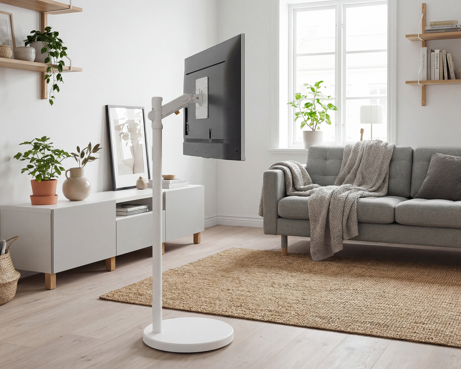 Golvstativ för TV från MaxMount som erbjuder optimal flexibilitet för både kontors- och hemmabruk. Med stöd för skärmar i storlek mellan 17 och 43 tum och en maximal belastning på 17 kg per skärm, är det ett mångsidigt alternativ för alla som söker en stabil och justerbar lösning. Den justerbara fjäderarmen gör det enkelt att anpassa höjd och lutning för att få den perfekta betraktningsvinkeln.Stativet är tillverkat av högkvalitativa material som plast och aluminium, vilket säkerställer både hållbarhet och låg vikt. Med målmedveten design inbyggd i konstruktionen, inkluderar det dessutom integrerad kabelhantering som håller kablar ordnade och dolda. Detta ger ett rent och professionellt utseende, vilket är särskilt viktiga i arbetsmiljöer. Dess stora rotationsförmåga mellan +180° och -180° och lutning på +75° till -45° möjliggör anpassning för olika betraktningsvinklar. Dolda hjul under stativet gör det enkelt att flytta det utan att kompromissa med stabiliteten.