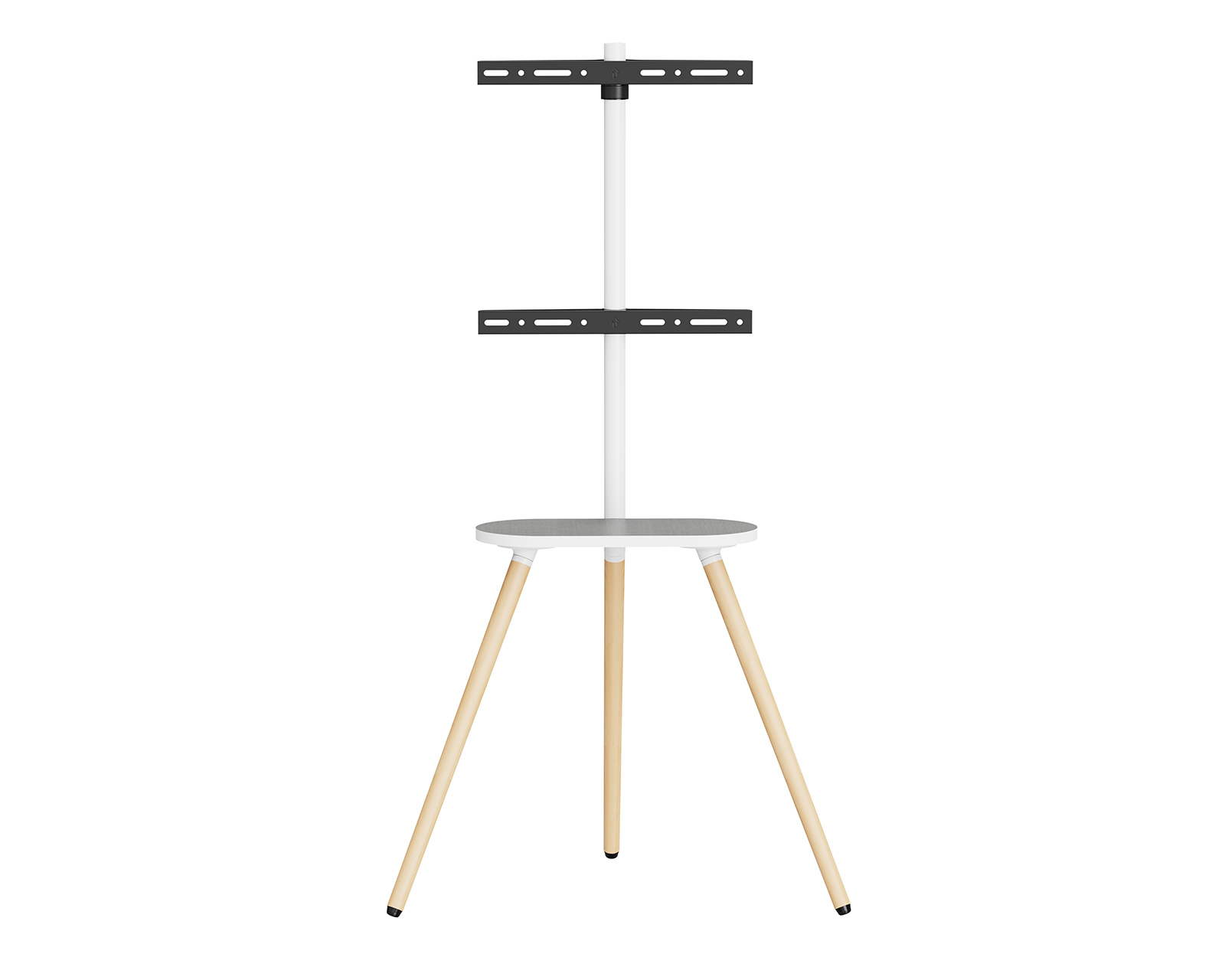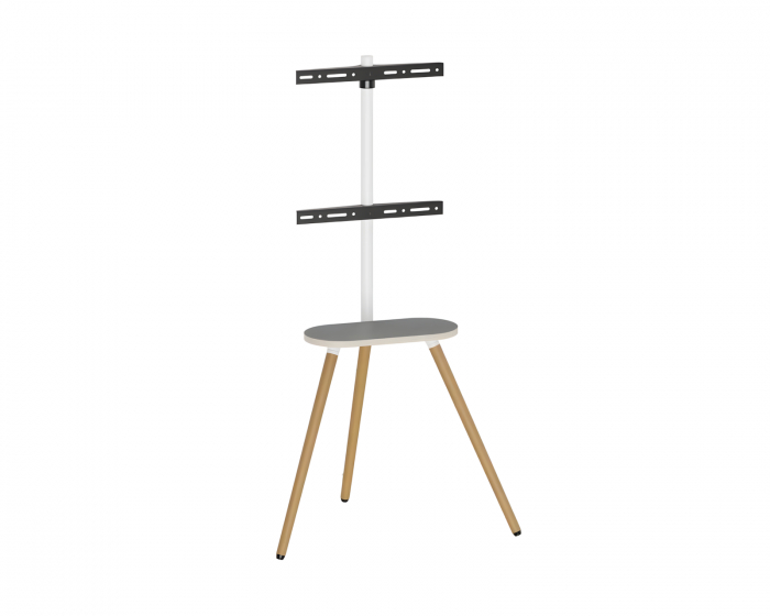 Easel Studio TV Floor Stand är en tv-stativ från MaxMount som kombinerar stil och funktion. Den är designad för att skapa en bekväm tittarupplevelse, perfekt för hemteatrar, kontor och utställningscentra. Med en svängbar skärm, som rör sig mellan +45° och -45°, kan du enkelt justera vinkeln för att passa din publik. Den glansiga melaminhyllan placeras direkt under TV:n och erbjuder praktisk förvaring för fjärrkontroller, portabla högtalare och andra småsaker.Stativet är tillverkat av robusta material, inklusive stål, aluminium, och melamin, vilket ger en stabil konstruktion med en viktkapacitet på upp till 35 kg. Med en kompakt dimension på 735x508x1365 mm kan den passa skärmar mellan 43 och 65 tum, samtidigt som den är VESA-kompatibel för enkel installation. Det integrerade kabelhanteringssystemet håller kablarna organiserade och ur vägen, vilket bidrar till en snygg och ren installation. Säkerhetsalternativ som ingår ser till att stativet inte välter.