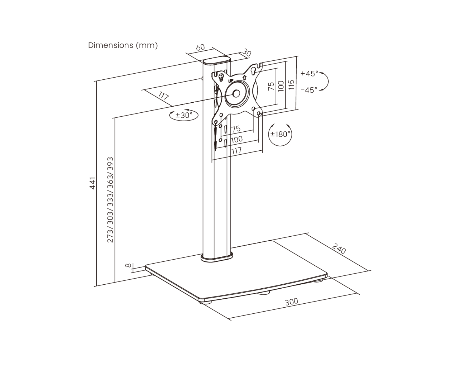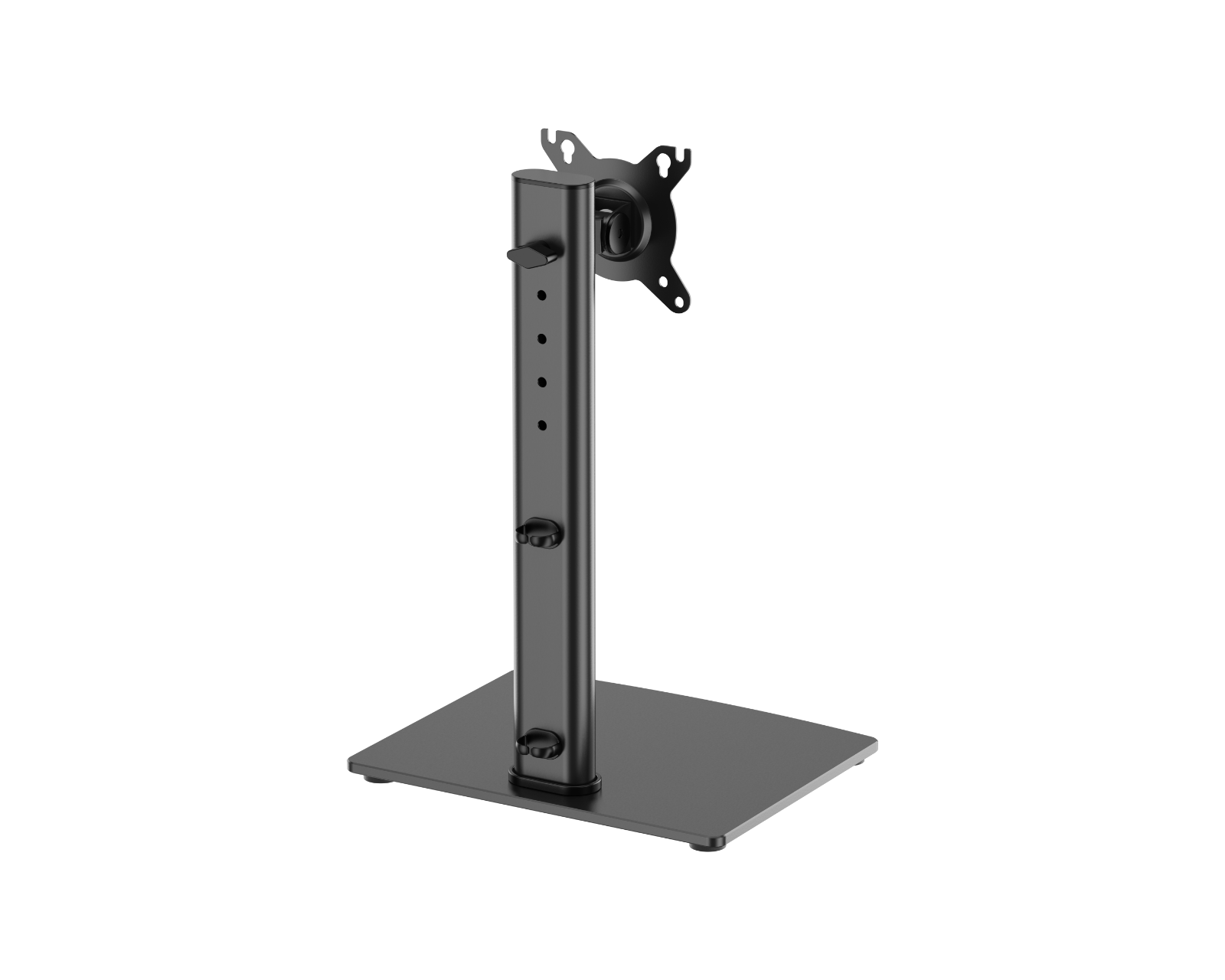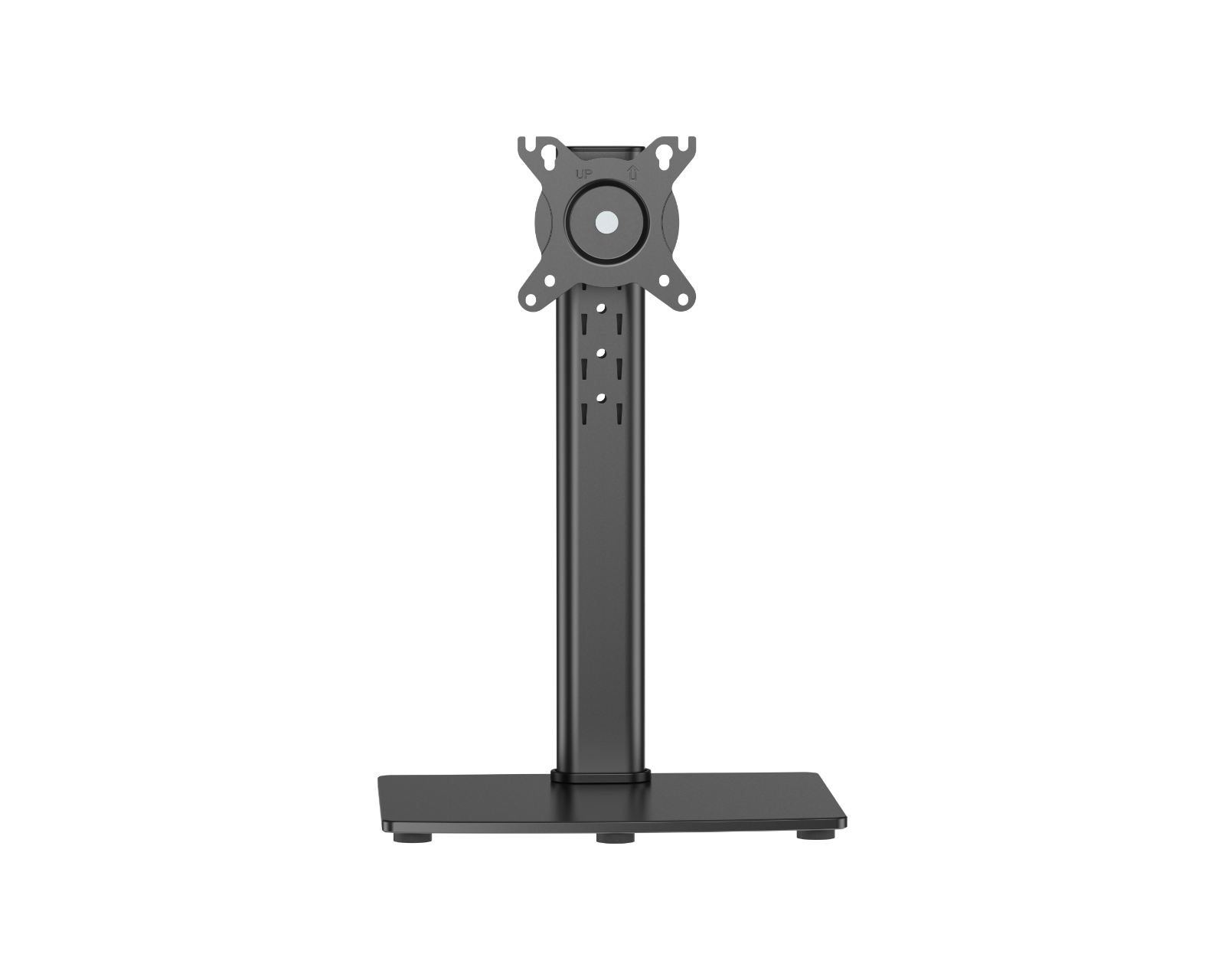 Vertikalt Skärmstativ 17"-34" 12 kg – Svart är en monitorhållare från MaxMount designad för att stödja skärmar mellan 17 och 34 tum. Stativet erbjuder en mängd olika höjdjusteringsalternativ och har en stabil konstruktion med ett säkerhetslås för ökad säkerhet. Med en otroligt stabil bas av härdat glas uppnås en både funktionell och stilren lösning för moderna arbetsstationer. Den kompakta förpackningen underlättar transport och gör den ideal för både e-handel och bulkbeställningar.Byggkvaliteten på skärmstativet är imponerande, bestående av härdat glas och stål vilket bidrar till både hållbarhet och stil. Den integrerade höjdjusteringen är designad för att möjliggöra snabb och enkel justering utan verktyg, vilket maximerar användarvänligheten. Det 360° roterande VESA-fästet stödjer olika visningsvinklar, vilket ökar ergonomin under användning. Den låsbara vridknappen säkerställer att skärmen hålls på plats oavsett justering. Dessutom har stativet svängmöjlighet, vilket gör det möjligt att justera visningsvinkeln snabbt och effektivt. Med kabelhantering underlättas en organiserad och ren arbetsyta.