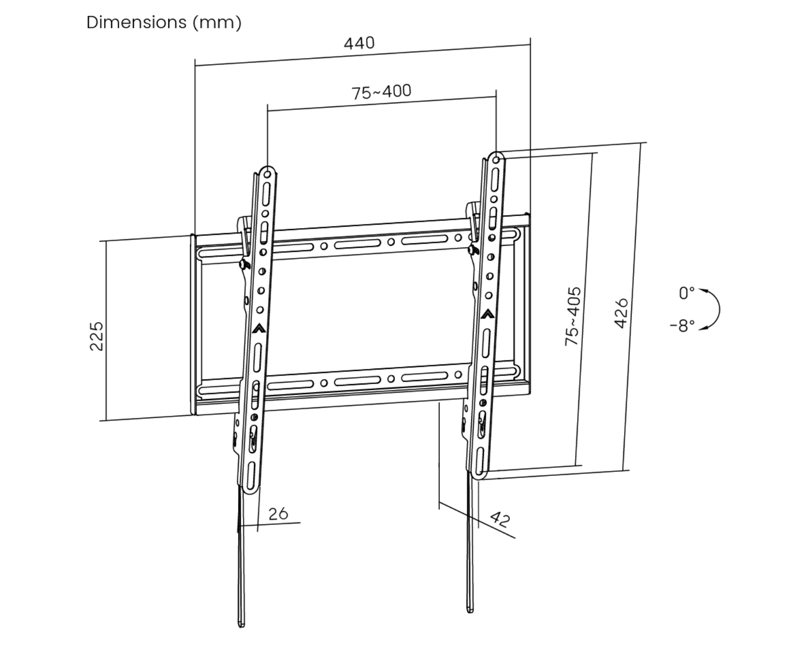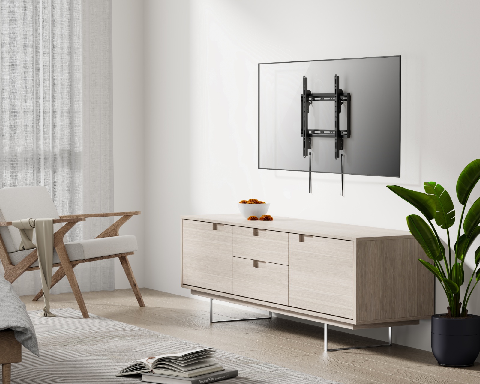 Väggfäste Tilt för TV 32″-75″ är en produkt från MaxMount som erbjuder en stabil och lättanvänd lösning för att montera stora TV-apparater. Den stödjer skärmar i storlekar mellan 32 och 75 tum och klarar vikter upp till 75 kg (165 lbs). Monteringen möjliggör en lutning från 0° till -8°, vilket ger flexibilitet för optimal visningsvinkel. Den slimmade profilen på 42 mm bidrar till en diskret installation.Väggfästet är tillverkat av robusta material för att säkerställa hållfasthet och långvarig användning. Den öppna strukturen underlättar luftcirkulation och ger enklare åtkomst till kablar, vilket minimerar risken för överhettning och gör installationen smidigare. Fästet är också utformat för att vara enkelt att montera utan verktyg, tack vare det användarvänliga lutningssystemet. Vidare minskar den kompakta förpackningen transport- och lagringskostnader, vilket är fördelaktigt för e-handelsföretag.