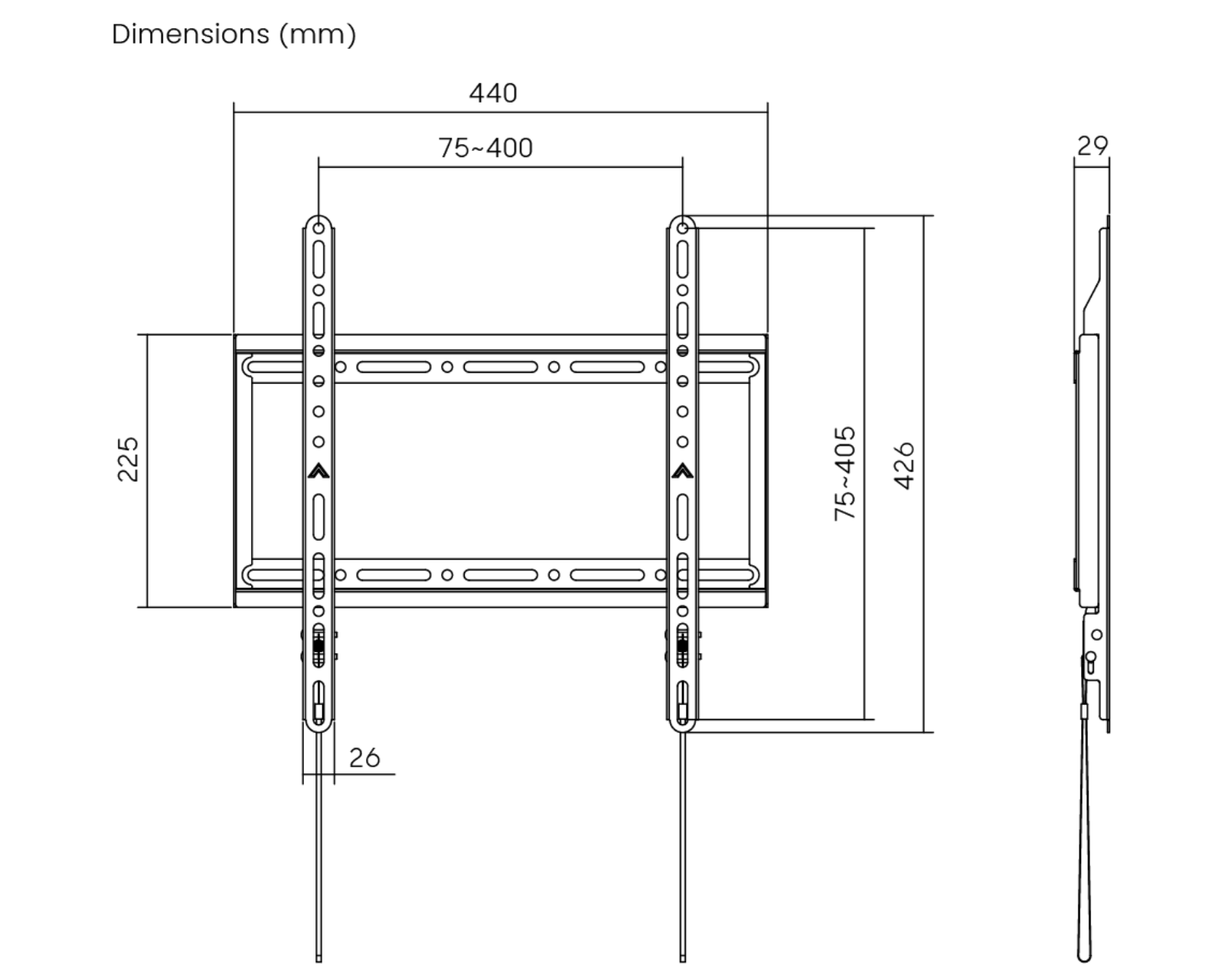 Väggmontering för TV Fast 32″-75″ är en väggmontering från MaxMount avsedd för TV-apparater mellan 32 och 75 tum, med en maximal viktkapacitet på 75 kg. Den fasta konstruktionen ger stabilitet och en smidig installation, vilket gör den lämplig för både hem- och kontorsmiljöer. Med en extremt tunn profil på 29 mm säkerställs en diskret installation nära väggen, vilket minimerar upplevd volym och förbättrar det estetiska intrycket av rummet. Förbättrad ventilation och enkel åtkomst till kablar möjliggör en ren och organiserad installation.Väggmonteringen är tillverkad av robusta material som garanterar långvarig hållbarhet. Den har en automatisk fjädrande låsmekanism för att snabbt kunna avlägsna TV:n vid behov. Den öppna konstruktionen bidrar till bättre luftflöde, vilket minskar risken för överhettning av elektroniska enheter. Dess kompakta förpackning gör den också lämplig för e-handel, vilket kan sänka lagrings- och fraktkostnader.