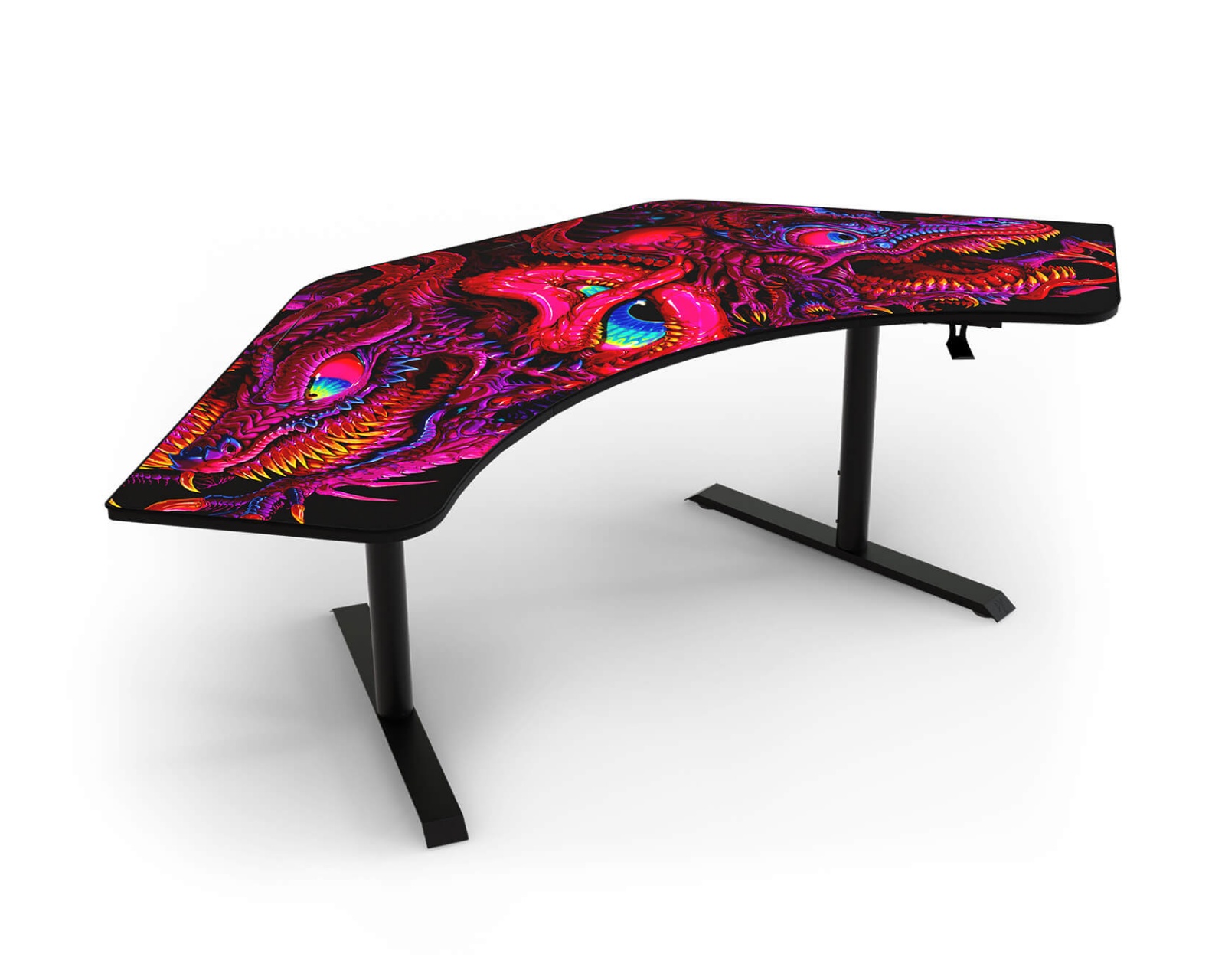 Detta gamingbord är designat för gamers som önskar en stabil och funktionell arbetsyta för sina spel- och arbetssessioner. Med en stilren och modern cool Crawling Chaos design. Bordets konstruktion är robust och tillverkat av högkvalitativa material för att säkerställa hållbarhet och stabilitet under användning. Det är utrustat med en bred yta, vilket ger tillräckligt med utrymme för flera skärmar, tangentbord och mus. Arena Angelo Gamingbord har funktioner som justerbar höjd och avlastningsplattor för att tillgodose gamers behov av komfort och ergonomi. Bordet har även sladdhantering för att minimera kabeltrassel, vilket ger en ren och organiserad arbetsplats.