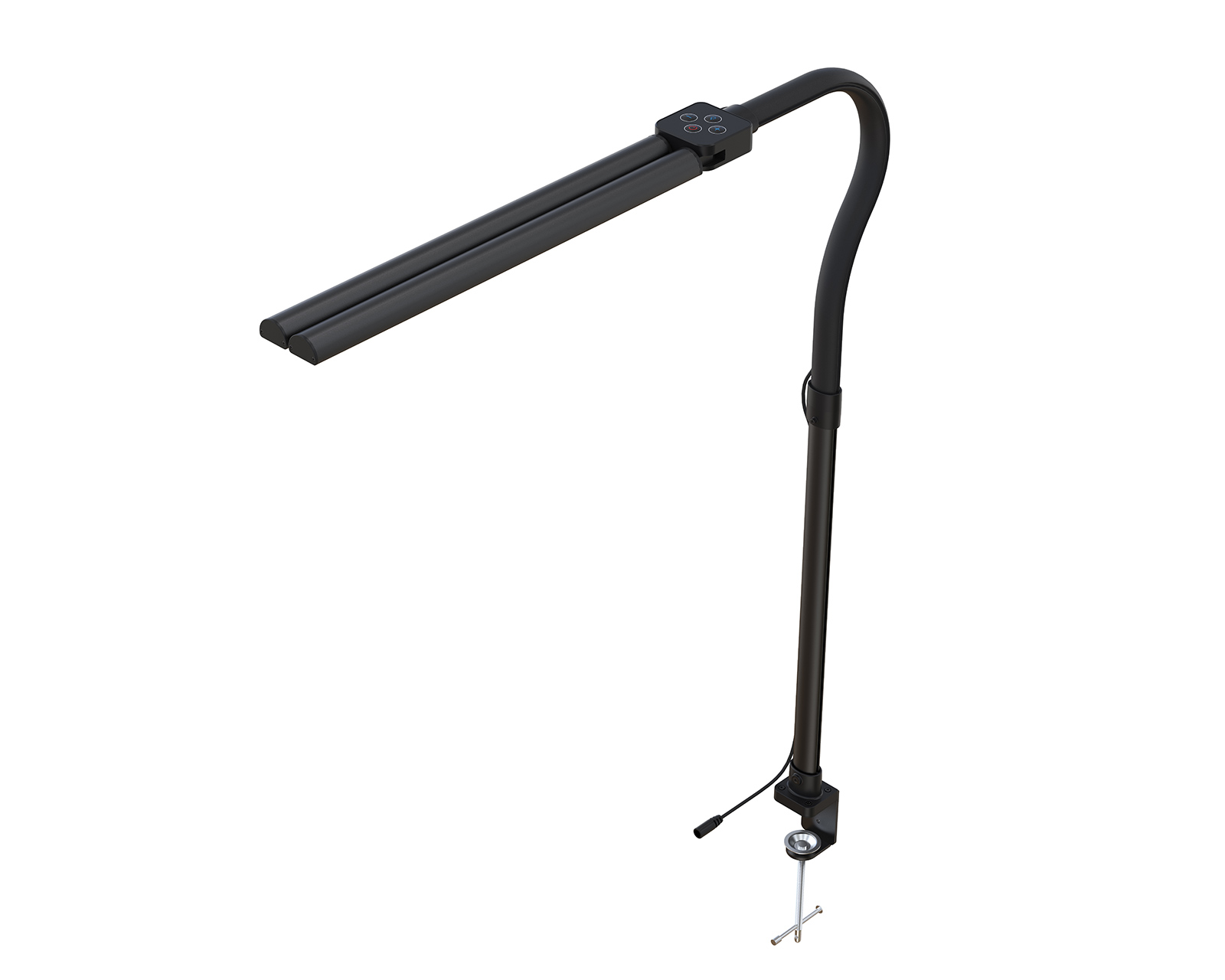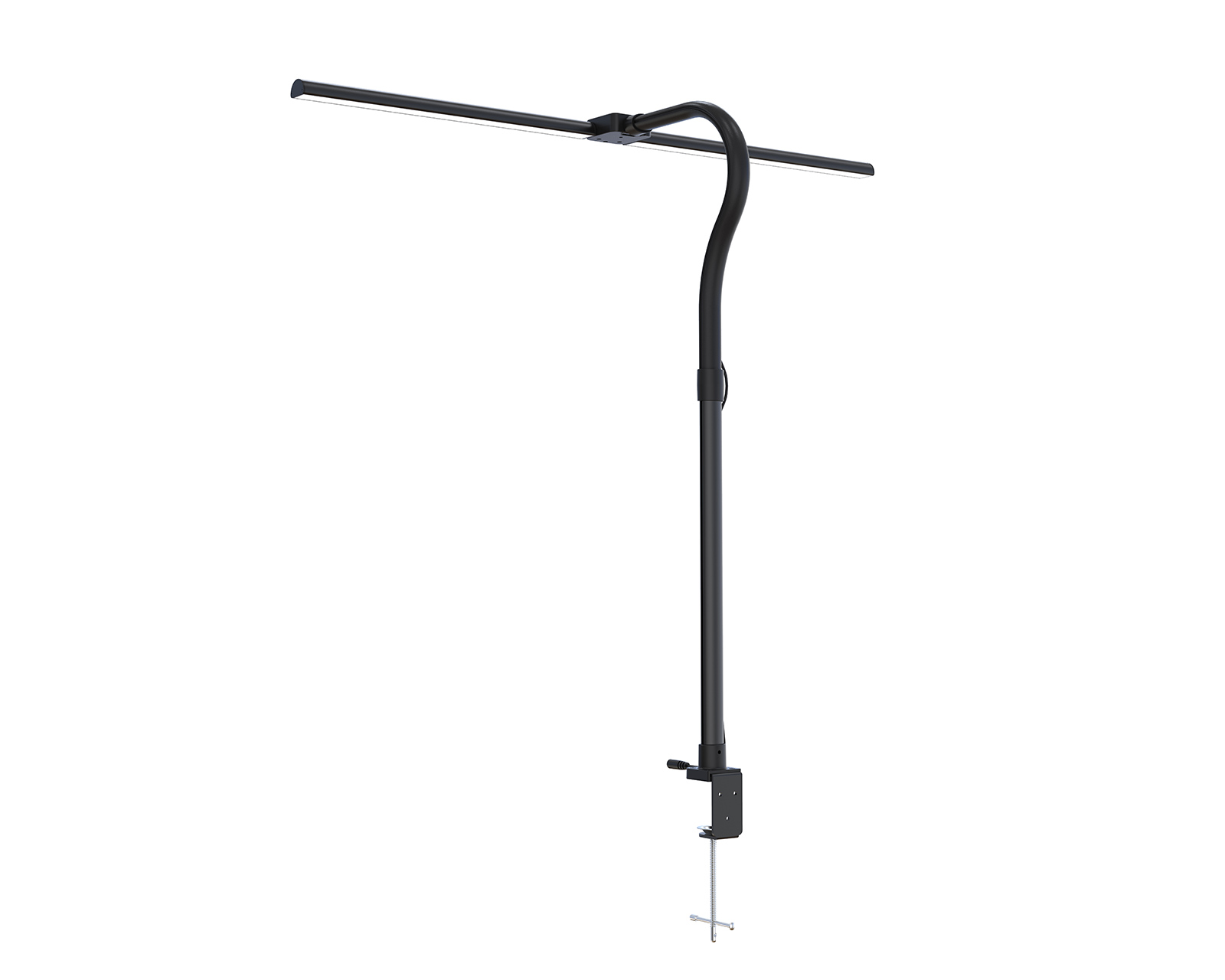 MaxMount LED-skrivbordslampa är en kraftfull arbetslampa med klämfäste som erbjuder precisionsbelysning med flexibla inställningar. Som en mångsidig kontorslampa har den en ljusstyrka på 850 lumen och justerbar färgtemperatur (2700 K–6500 K), vilket gör att den fungerar perfekt som både läslampa och pyssellampa. Denna LED-belysning är ett oumbärligt verktyg för hemmakontoret, proffs och studenter som behöver en ergonomisk bordslampa för maximalt fokus.Denna klämlampa har en ultrabred belysningsräckvidd, vilket gör den idealisk som skärmbelysning för stora skrivbord eller dubbla monitorer utan att skapa skuggor. Med en 1,5 m lång kabel och en lättillgänglig dimmer kan användaren enkelt justera ljusstyrkan på denna arkitektlampa efter behov. Den platsbesparande konstruktionen gör den till en perfekt skrivbordsbelysning för gaming, kreativt arbete och multitasking. En strömförsörjning på DC 24 V/1 A medföljer för att säkerställa ett stabilt och flimmerfritt ljus i din arbetsmiljö.