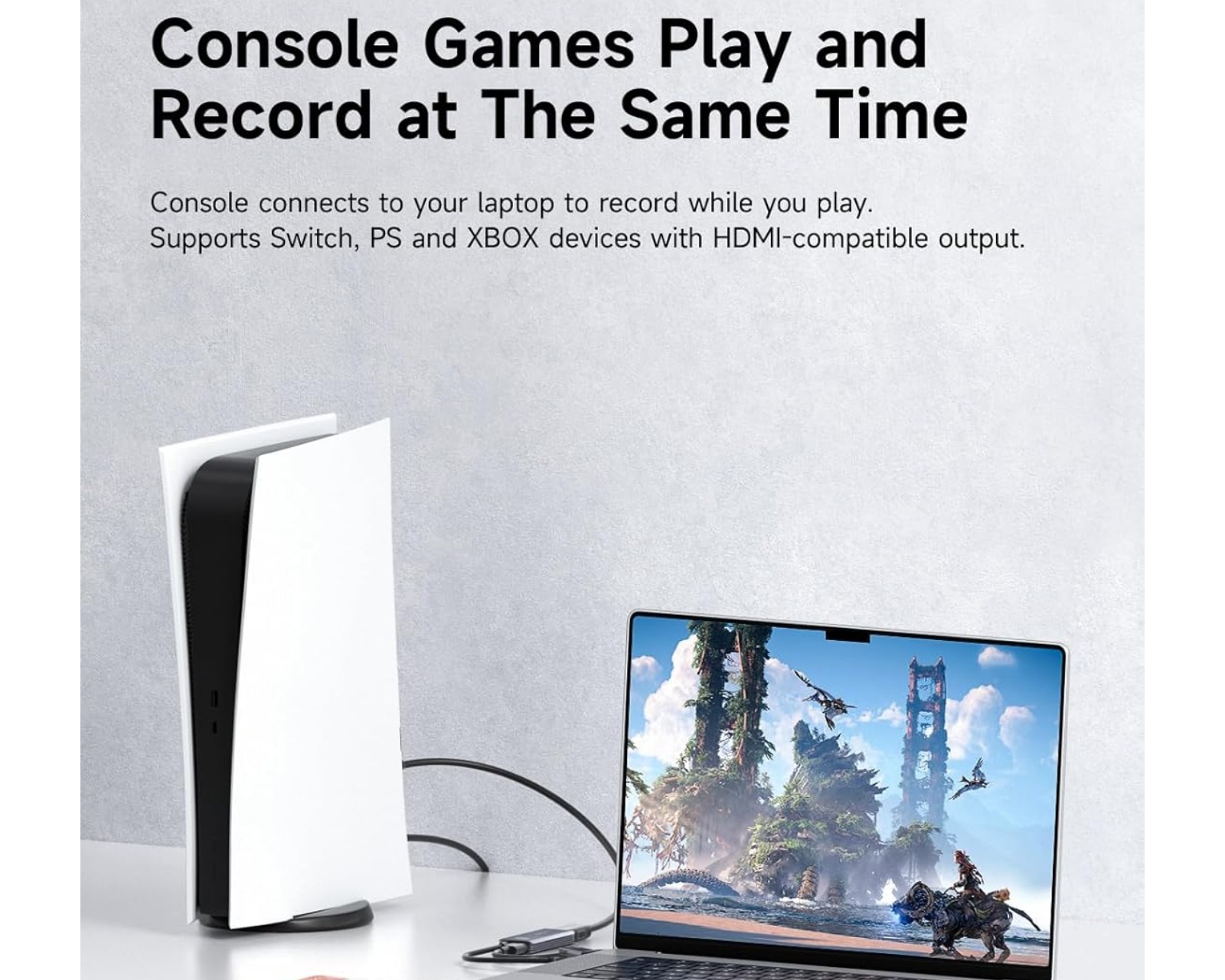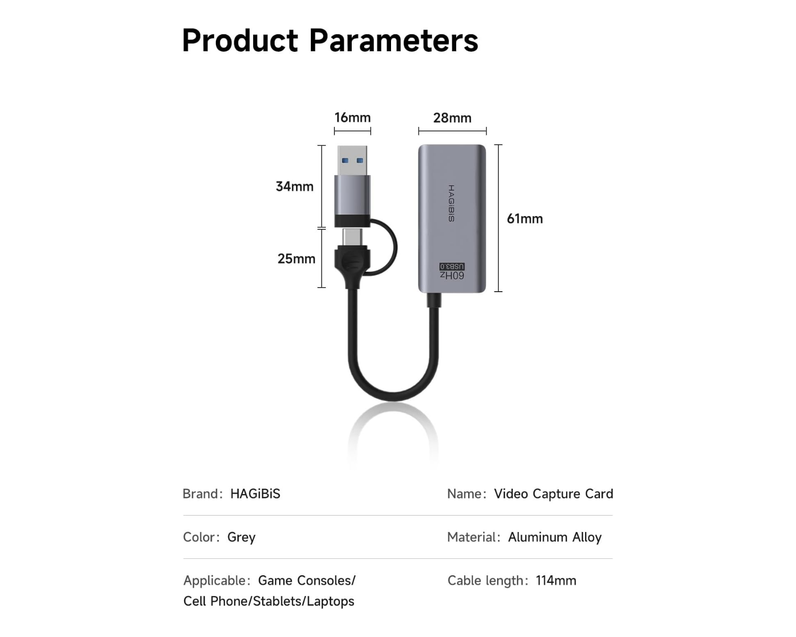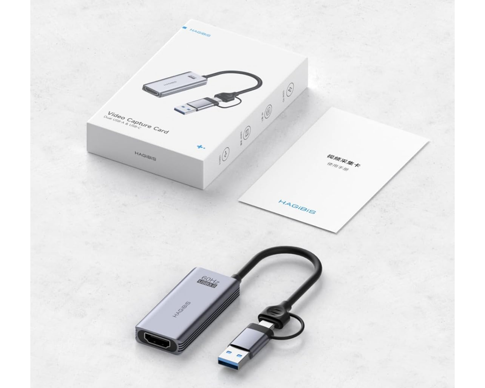 Hagibis videoinspelningskort är en video capture enhet från Hagibis som möjliggör inspelning av HD-video och ljud. Den har en maximal upplösning på 1080p vid 60 bilder per sekund, vilket gör den lämplig för gamers och användare som söker att streama eller spela in kvalitétsinnehåll. Den har både HDMI och USB Type-C anslutningar, vilket gör den kompatibel med en mängd olika enheter såsom bärbara datorer, surfplattor, mobiltelefoner, Xbox och PS4/5.Enheten är konstruerad med en innovativ dubbelanslutningsdesign som eliminerar problem med gränssnittsinkompatibilitet. Den är plug & play, vilket innebär att den kan användas utan behov av drivrutinsinstallationer eller extern strömförsörjning. Det kompakta formatet gör den lätt att transportera och passar utmärkt för livestreaming både inomhus och utomhus. Videoinspelningskortet är konstruerat för att ställa in mycket bra video- och ljudkvalitet under inspelning.