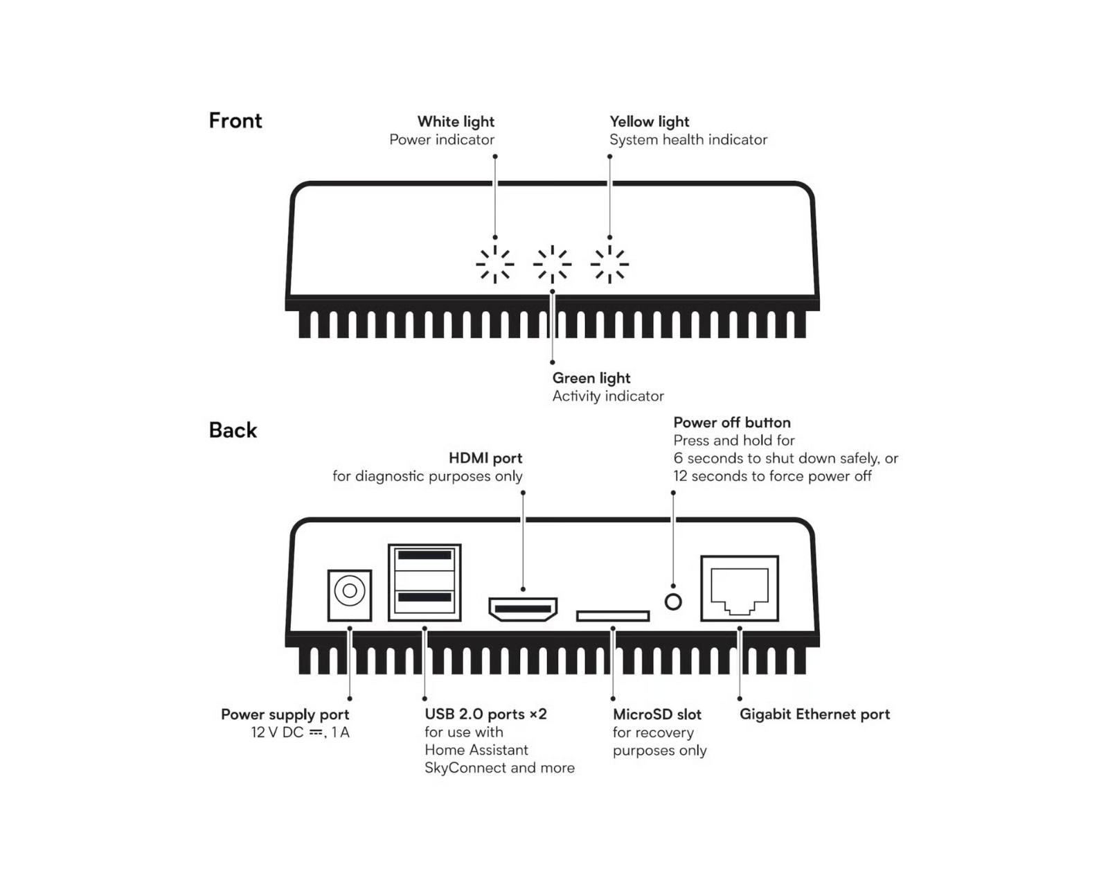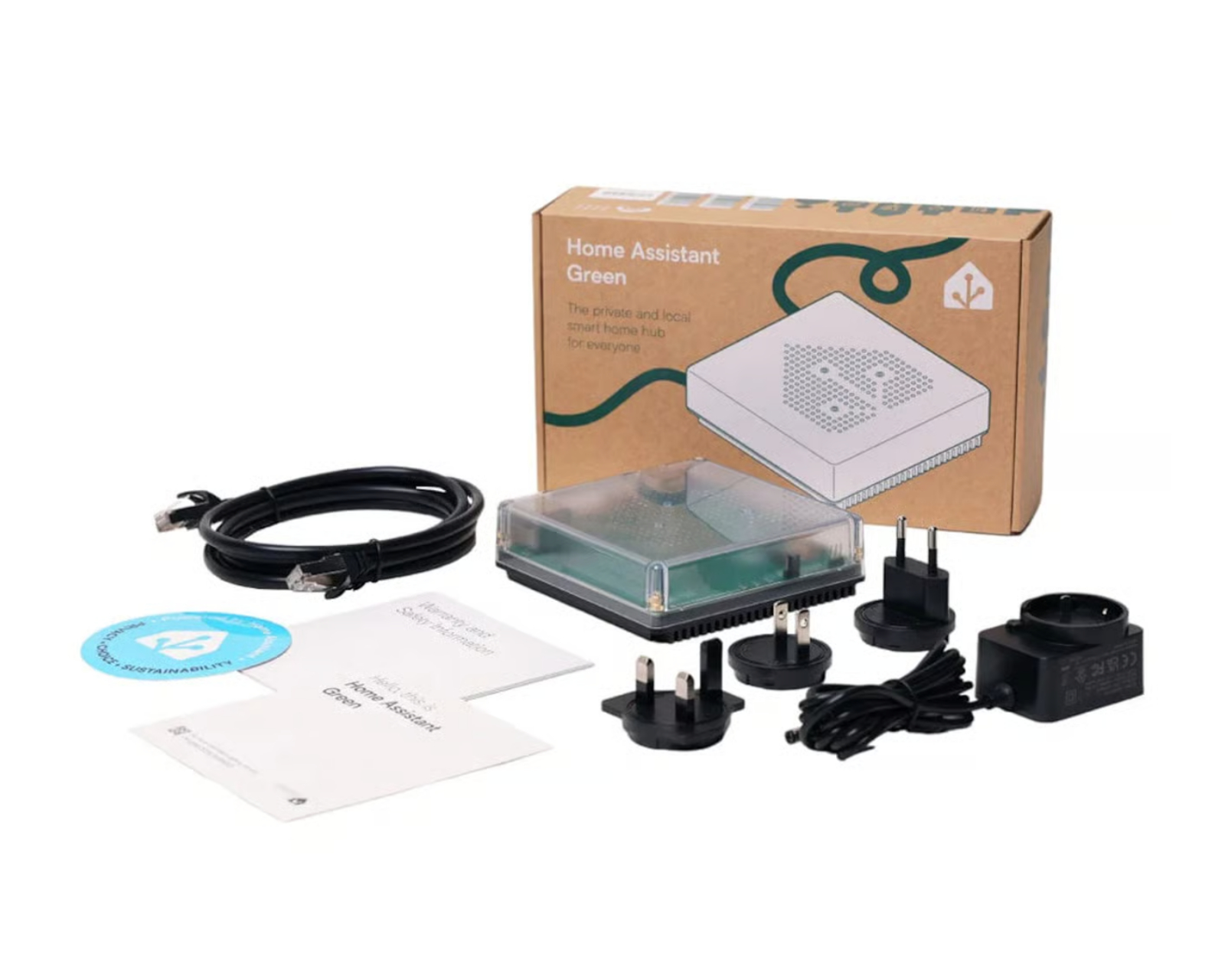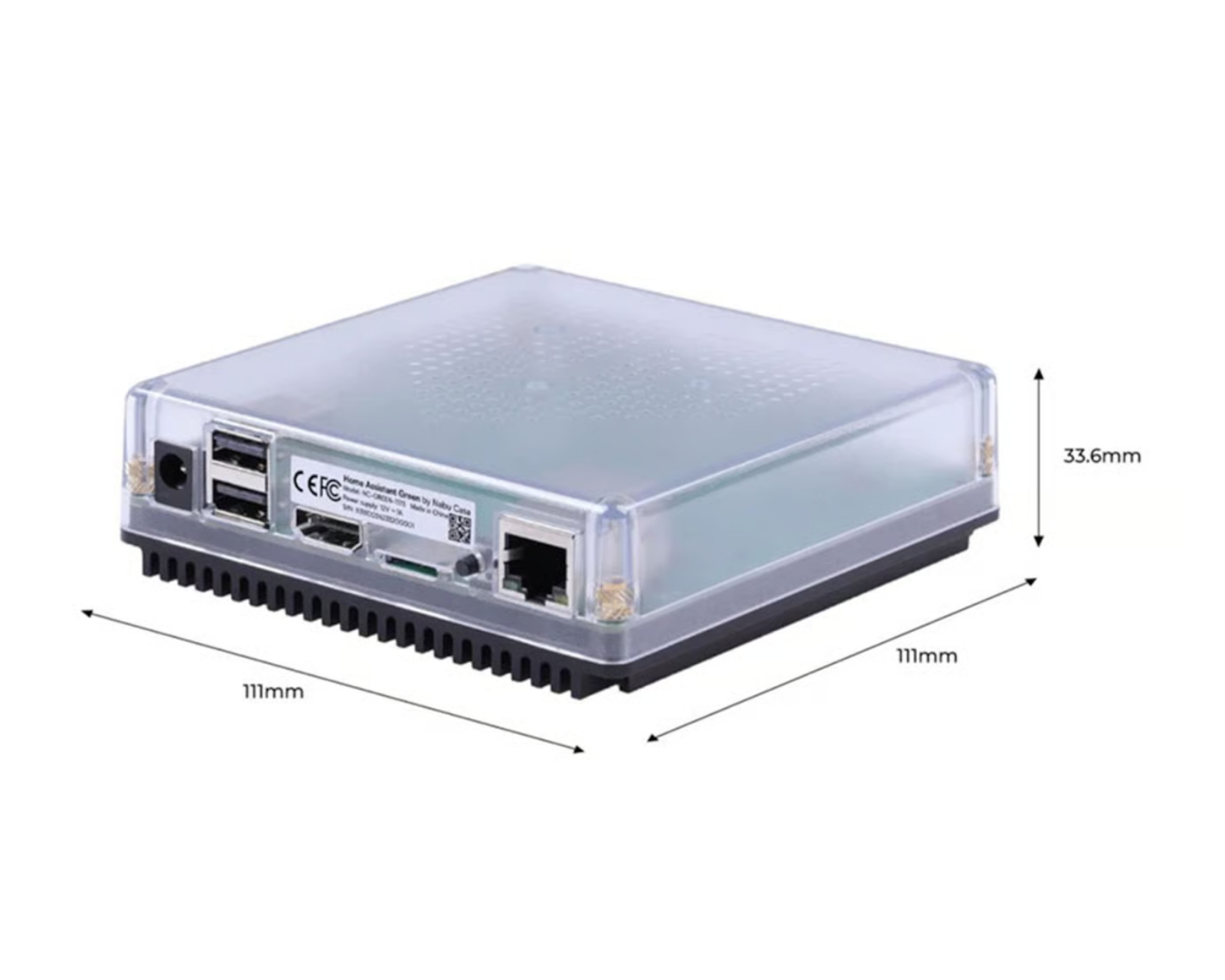 Home Assistant Green är en styrcentral för smarta hem från Nabu Casa som är designad för att underlätta användningen av Home Assistant. Utrustad med en fyrkärnig ARM-processor på 1,8 GHz och 4 GB RAM, erbjuder den kraftfull prestanda för snabb och effektiv drift. Med 32 GB eMMC lagring förinstallerad med Home Assistant blir uppsättningen enkel och snabb.Byggkvaliteten är på topp med en robust konstruktion och en stor kylfläns som möjliggör en ljudlös kylning. De dubbla USB-portarna och en Gigabit-port säkerställer snabba och pålitliga anslutningar för alla dina smart home-enheter. I förpackningen ingår även både strömsladd och nätverkskabel, vilket ger dig allt du behöver för att snabbt sätta igång. Home Assistant Green erbjuder stöd för SkyConnect, vilket ytterligare ökar dess användbarhet i ett smart hem.