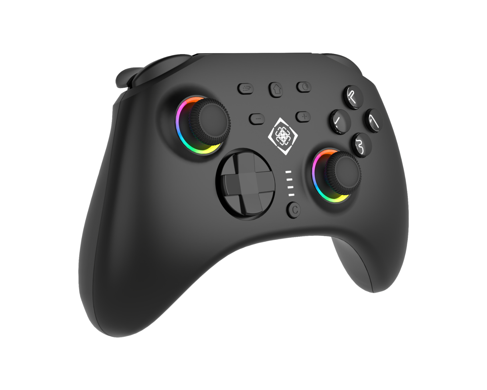 En spaktkontroll från Deltaco Gaming som erbjuder en dedikerad C-knapp för snabb åtkomst till chattfunktioner och ett ergonomiskt grepp. Kontrollen är designad för kompabilitet med Switch 2, Switch, Switch OLED samt Android och Windows PC, vilket ger en bred användningspalette. Utrustad med högprecisions 3D joysticks och Hall Effect sensorer för exakt kontroll och rörelse utan stick drift.Kontrollen är byggd för att optimera spelupplevelsen med Bluetooth 5.3-anslutning och en räckvidd på upp till 10 meter, vilket säkerställer stabil trådlös prestanda. Den justerbara RGB-belysningen ger möjlighet till visuell anpassning, och med två programmerbara makrotangenter kan användare effektivisera sina mest använda kommandon. Dual vibration motors tillhandahåller taktil feedback under spelandet, och turbo-knappen möjliggör snabb inmatning vid behov. 6-axis rörelsesensorer ger ytterligare precision i spelmiljöer och gör handlingar mer responsiva.