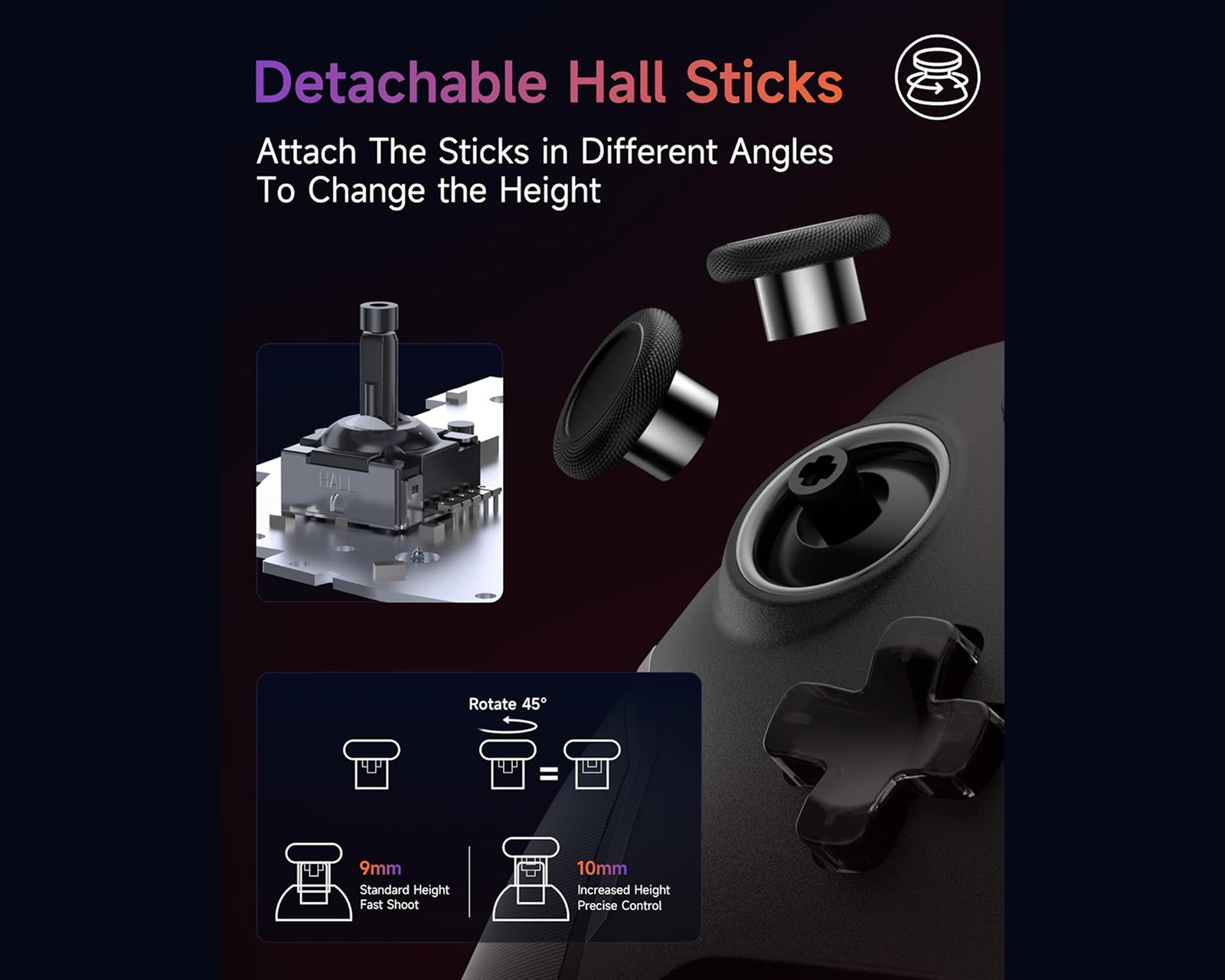 X20 Trådlös Kontroller PC/Switch från EasySMX levererar avancerad funktionalitet och mobilitet. Den här kontrollerar är utformad för användning med Windows PC, Android, Switch med en 1000Hz polling rate och avtagbara Hall-sticks för anpassad spelupplevelse. Dess RGB-belysning möjliggör en skräddarsydd visuell upplevelse.Kontrollens byggkvalitet är hög med fokus på hållbarhet och ergonomi, vilket förstärks av de mekaniska knapparna som ger tydlig feedback vid varje tryck. Med stöd för 6-Axis Gyro-teknik möjliggör kontrollerna precis rörelsekontroll över flera plattformar. De avtagbara Hall-stickers är justerbara i vinkel och höjd för att passa olika spelstilar, medan den snabba 1000Hz polling rate säkerställer att alla kommandon registreras utan fördröjning. Enheten stöder samtida anslutningar både trådlöst och genom kabel, vilket ger flexibilitet och mångsidighet.