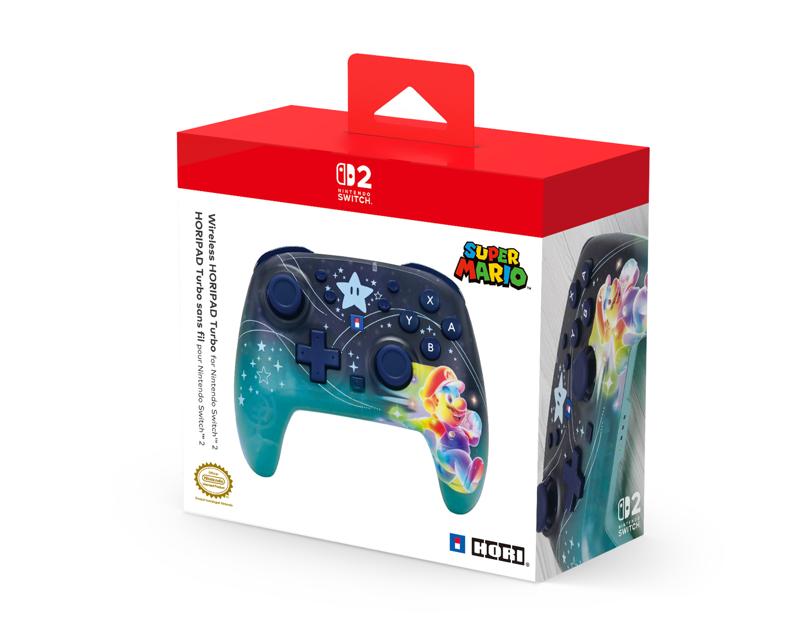 HoriPad Turbo är en trådlös handkontroll från Hori, designad för Nintendo Switch 2. Den erbjuder en ergonomisk och genomskinlig design som kombinerar komfort och stil, vilket gör den idealisk för långa spelsessioner. Kontrollern är utrustad med ett uppladdningsbart batteri som ger upp till 10 timmars speltid på en enda laddning.Byggkvaliteten hos HoriPad Turbo är hög, med hållbara TMR-spakar för precisionsstyrning och ett inbyggt gyroskop som möjliggör avancerad spelkontroll genom rörelse. Det trådlösa förbindelsessystemet har en räckvidd på upp till 10 meter, vilket ger spelare friheten att röra sig utan begränsningar. Kontrollen har även programmerbara bakre knappar och en knapplåsfunktion för att förhindra oavsiktliga inmatningar under intensiva spelstunder. Dessutom är den officiellt licensierad av Nintendo, vilket säkrar kompatibilitet och kvalitet.