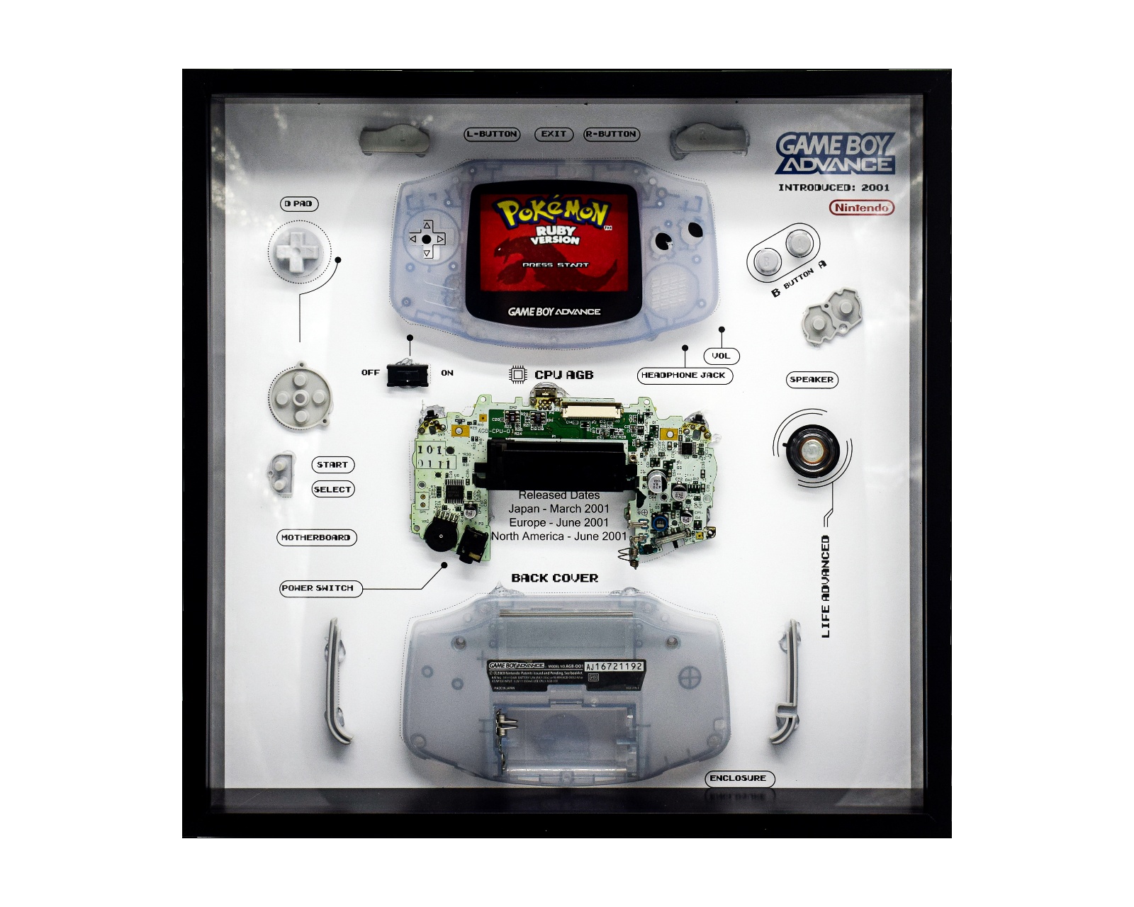 Retro Art Nintendo Gameboy Advance Konsoldisplay är en produkt från GRC som erbjuder en visuell presentation av Nintendo Gameboy Advance-konsolen. Den är designad för att framhäva och skydda enheten, vilket gör den idealisk för både utställningar och samlare. Konsoldisplayen är gjord av hållbara material och har en stilren och retro-inspirerad estetik som kompletterar konsolen på ett effektivt sätt.Materialet är av hög kvalitet och byggkonstruktionen är noggrant utformad för att säkerställa stabilitet och långvarig användning. Displayen tillåter enkel åtkomst till konsolen och har en design som säkerställer att kontroller och knappar kan nås utan hinder. Ytbehandlingen ger dessutom en visuell effekt som förstärker den retro stil som många gamers uppskattar. Det är också kompatibelt med de flesta standardställningar och har dimensioner som möjliggör en idealisk placering på hyllor eller bord.