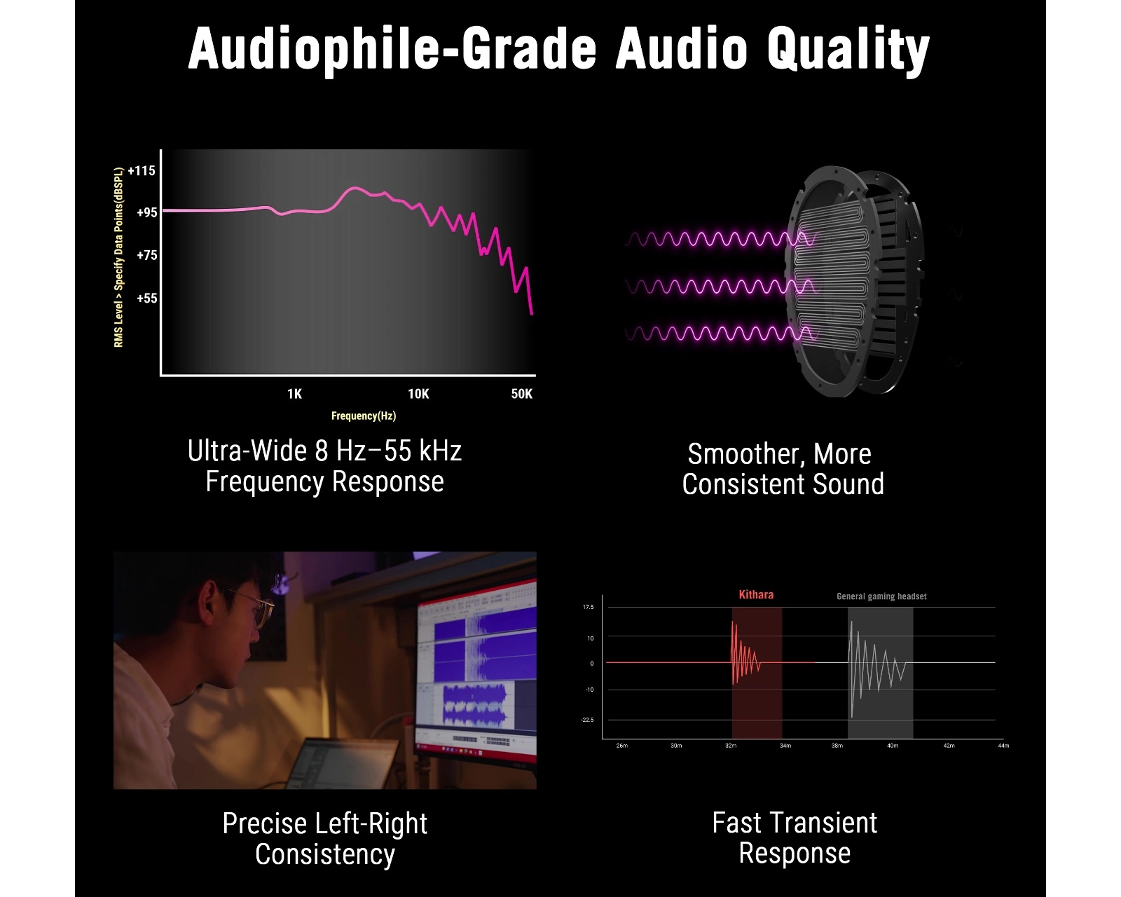 - Frekvensrespons på 8 Hz till 55 kHz