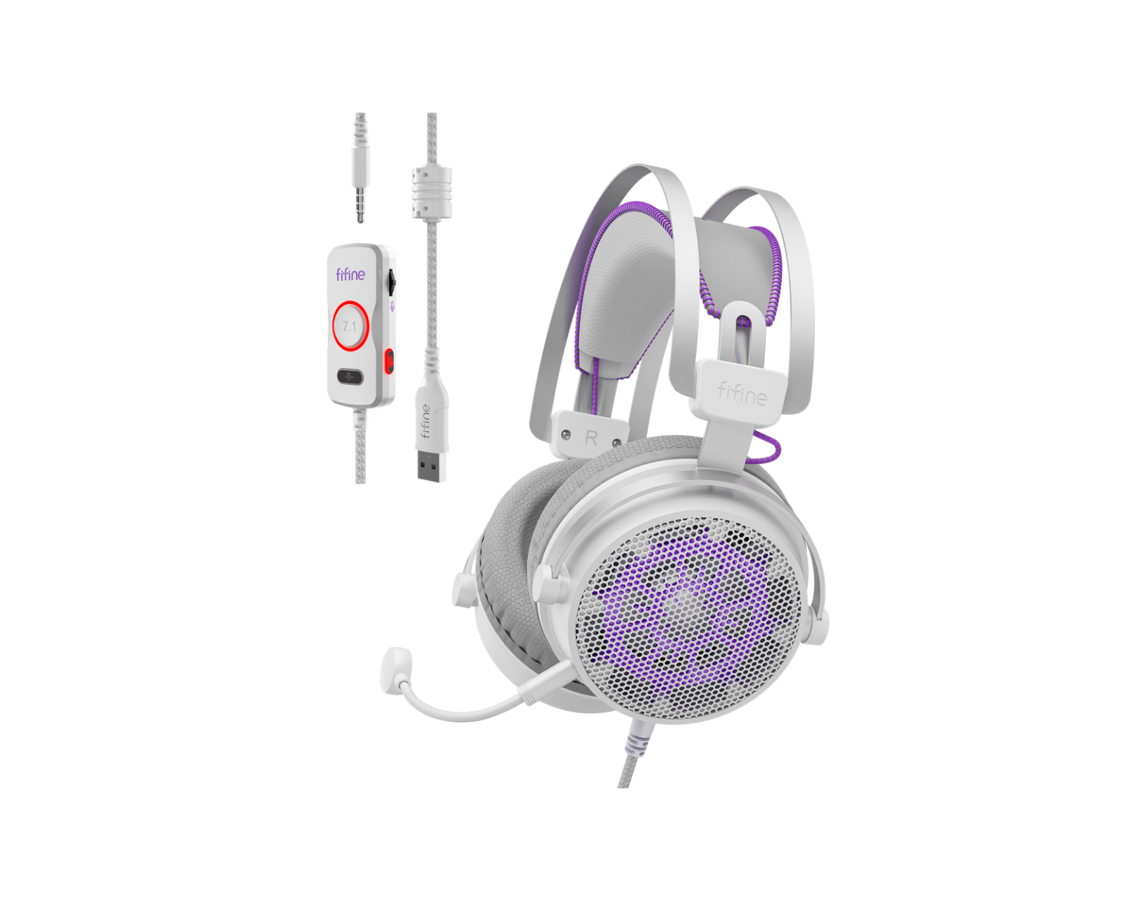 FIFINE H18V är ett gamingheadset från Fifine som erbjuder en öppen akustisk design och högkvalitativa 53 mm drivers för överlägsen ljudåtergivning. Denna headset är utformad för att ge gamers en taktil fördel under spel, med fokus på ljuddetaljer som kan avgöra utgången av en match. Viktiga funktioner inkluderar en avtagbar mikrofon som garanterar klara kommunikationer och en ergonomisk adaptiv huvudbygel för långvarigt spelande.Byggkvaliteten på H18V är optimerad för komfort och hållbarhet, med en lättviktsdesign och ett dubbel-lager i huvudbygeln som säkerställer en jämn viktfördelning. De extra tjocka skumöronen är både mjuka och ventilerade, vilket bidrar till en behaglig känsla under långa spelsessioner. USB-kontrollen som medföljer möjliggör snabb justering av volym och mikrofonens ljud, vilket gör det enkelt att vara fokuserad under intensiva stunder. Med ett 3,5 mm jack och USB-A-anslutning kan headsetet enkelt kopplas till flera plattformar som PC, PlayStation och Xbox.