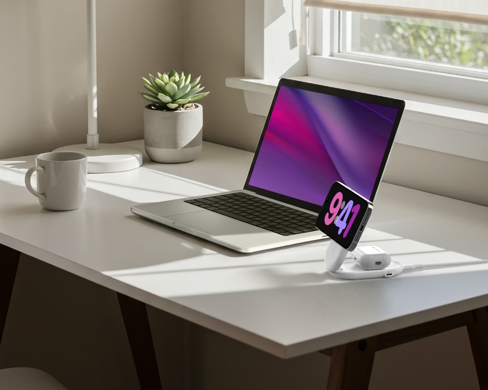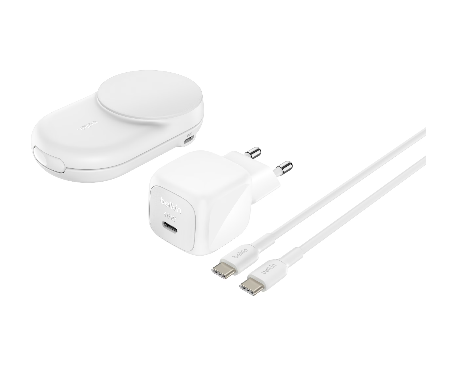 Laddaren är konstruerad i vit färg och kommer med en 1,5 m lång kabel samt en 45W USB-C-strömadapter. Den har en hopfällbar och reseanpassad design som gör den lätt och bärbar. Med ChillBoost, en passiv kylteknik, kan användaren minimera värmeutveckling under laddning för att skydda batteriet. Den möjliggör uppladdning av en iPhone från 0-50 % på endast 29 minuter. Laddaren har även en separat USB-C-port på 5W, vilket gör det möjligt att ladda en smartklocka samtidigt.