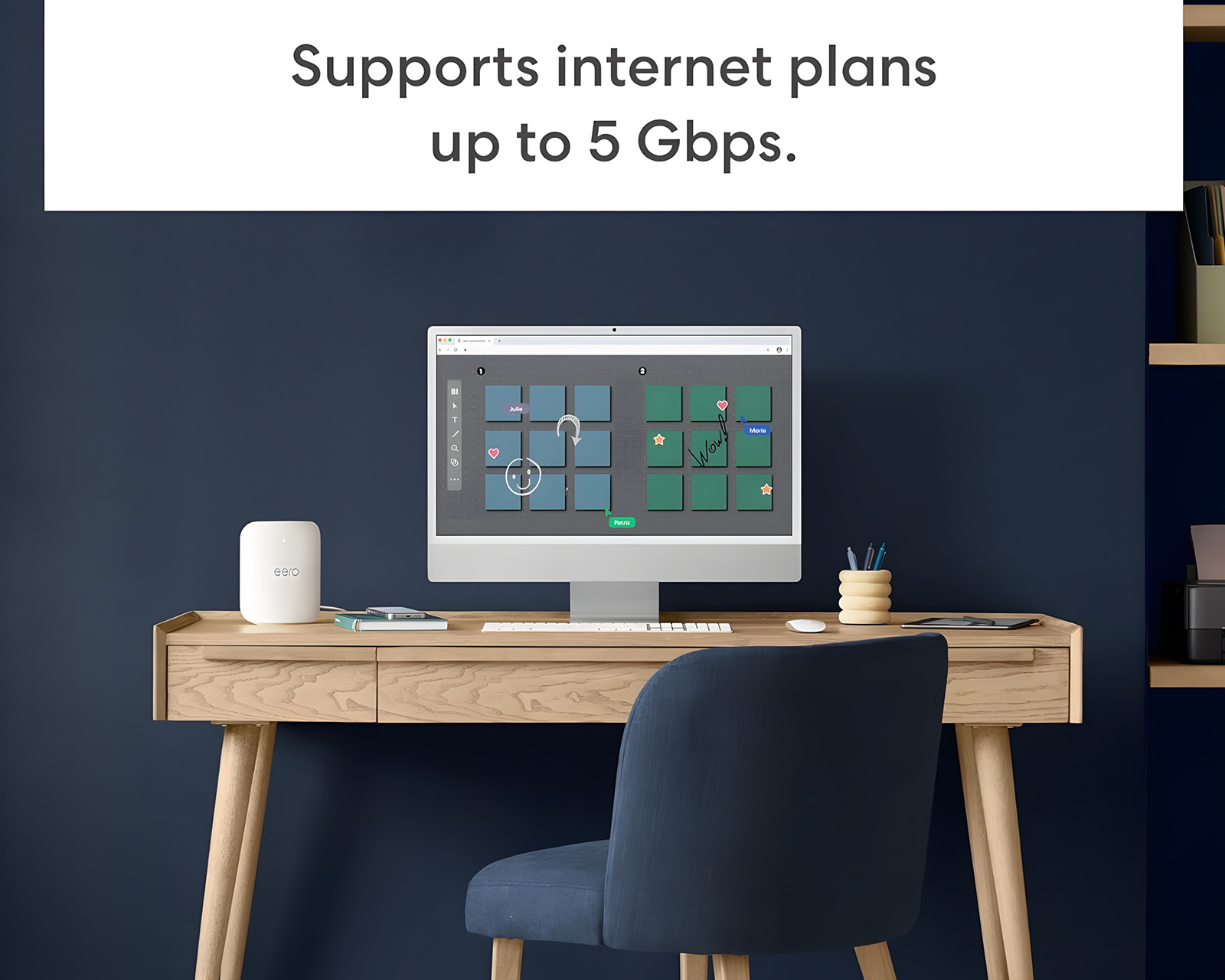 En tri-band Wi-Fi 7 mesh-router från Eero som erbjuder kraftfull täckning och hög hastighet för dagens uppkopplade hem och kontor. Med en kapacitet för trådlösa hastigheter upp till 3.9 Gbps och två auto-sensing 5 GbE portar för trådbundna anslutningar erbjuder Eero Pro 7 exceptionell prestanda. Routern är framtidsäker och är bakåtkompatibel med tidigare generationer av Eero, designad för att hantera över 200 enheter i hemmet.Eero Pro 7 är konstruerad med hjälp av TrueMesh-teknologin som garanterar optimal anslutning genom automatisk kanalval och bandstyrning. Detta gör att routern reagerar smart på nätverksförhållanden och minskar latenstiden, vilket är viktigt för spel och strömning. Den kan täcka upp till 2,000 kvadratfot och är idealisk för hushåll med flera smarta enheter. Dessutom medför ett omfattande säkerhetssystem som innefattar WPA3-kryptering och stöd för olika nätverkstjänster en säker användning av nätverket.
