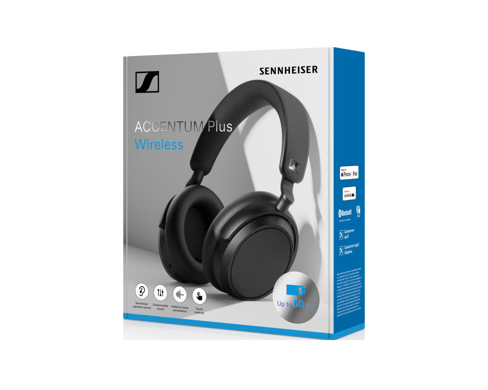 Sennheiser Accentum Plus är en trådlös over-ear hörlur från Sennheiser med anpassningsbar ljudteknik och en imponerande batteritid. Med hela 50 timmar speltid på en enda laddning och en praktisk snabbladdning på bara 10 minuter för 5 timmars användning, erbjuder dessa hörlurar enastående bekvämlighet och frihet. De är särskilt utformade för att anpassa ljudet efter din omgivning och innehåller adaptiv aktiv brusreducering för en mer immersiv lyssningsupplevelse.Accentum Plus har en högkvalitativ akustisk design med vinklade 37 mm drivrutiner som säkerställer en autentisk ljudupplevelse. Med hjälp av den senaste generationens adaptiva hybrid-ANC kan du enkelt stänga ute störande ljud, vare sig du befinner dig i en bullrig miljö eller på en lång flygning. Den lätta och ergonomiska designen gör att hörlurarna kan bäras komfortabelt under längre perioder, vilket är perfekt för både gaming och musiklyssning. En inbyggd 5-bands equalizer ger möjlighet att personalisera ljudet efter dina preferenser.