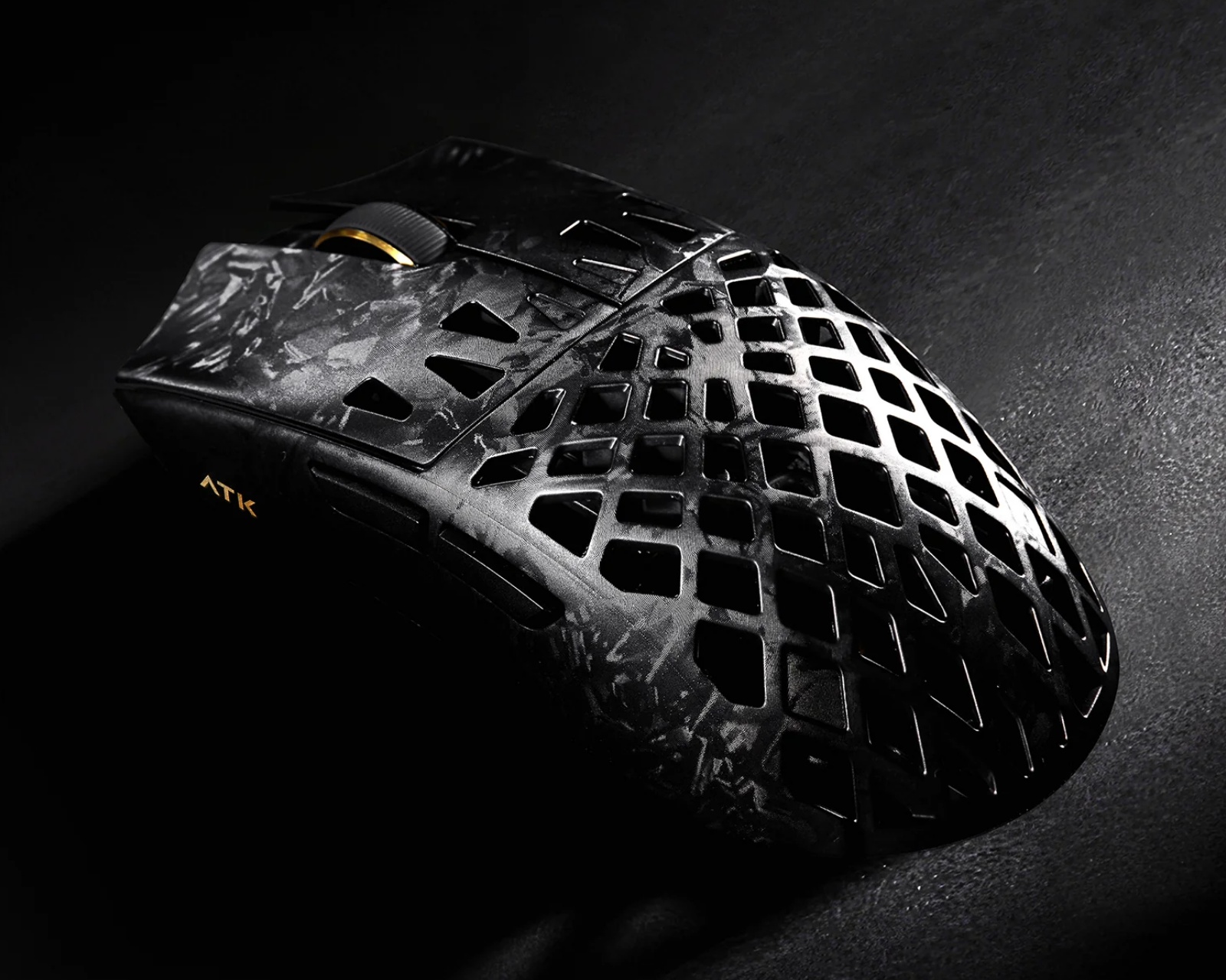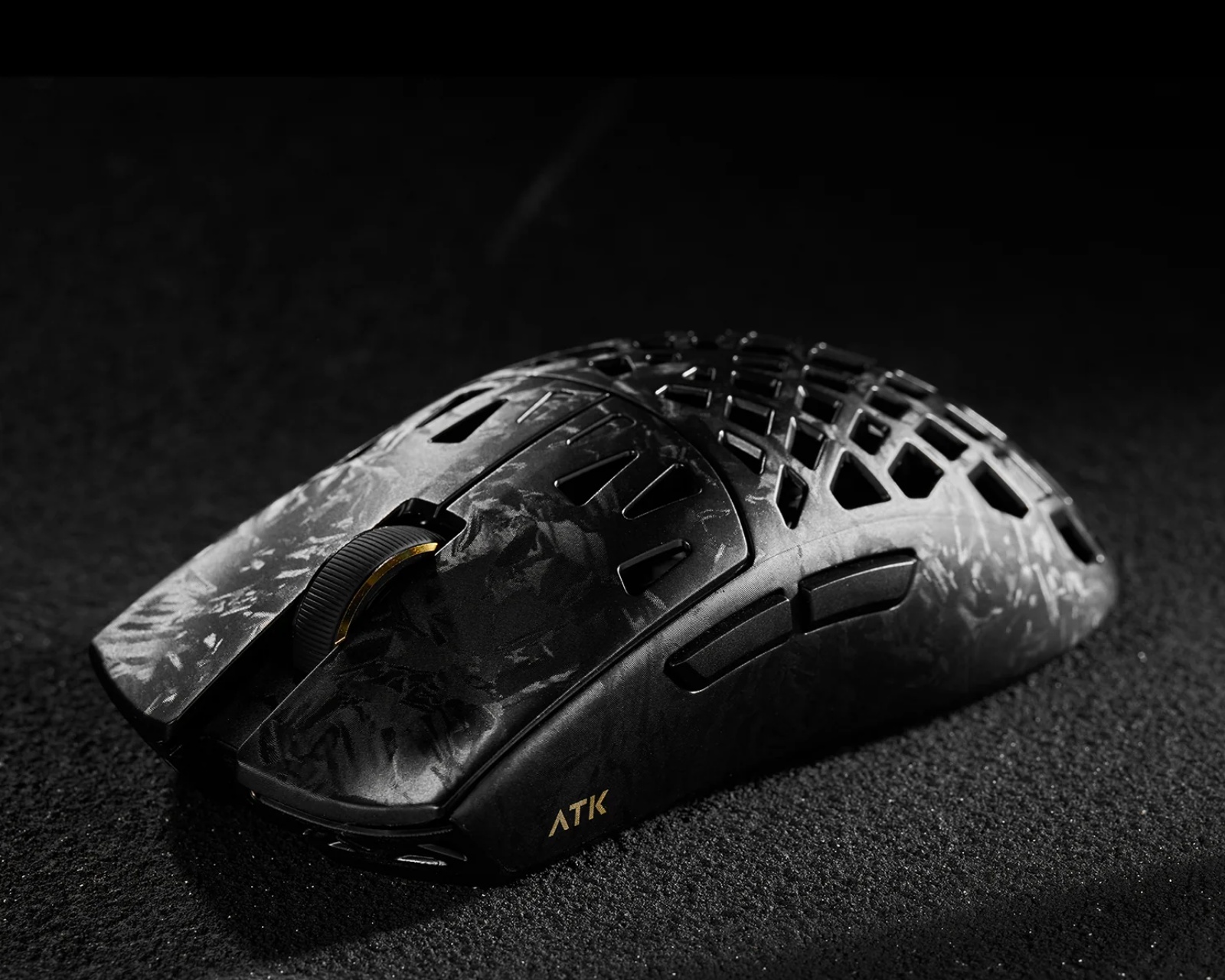 GHOST Ultimate Trådlös Gamingmus är en gamingmus från ATK som erbjuder en högpresterande trådlös lösning. Den är baserad på en hollowskonstruktion med kolfiberkompositmaterial, vilket ger en överlägsen byggkvalitet och känsla. Designad för medium till små händer och optimerad för alla greppstilar ger GHOST en bekväm och intuitiv upplevelse för gamers.Musen väger endast 48±3g och har exakta mått på 121mm x 61.3mm x 38mm, vilket bidrar till dess lätthet och hanterbarhet. Den använder PAW3950 Ultra-sensorn och mäter polling rate i intervallet 125-8000Hz, vilket gör den extremt responsiv. Utrustad med en ny nano-beläggning erbjuder den både grepp och hållbarhet.