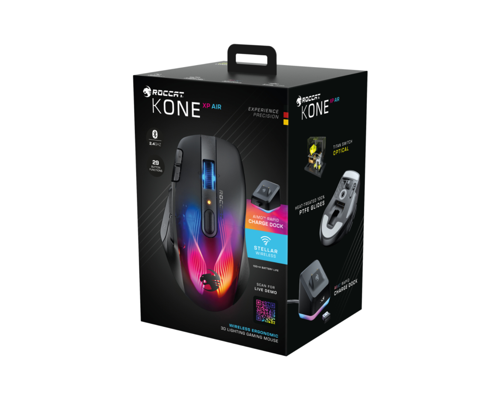 Upptäck Turtle Beach Kone XP Air Trådlös Gamingmus – den ultimata musen för spelare som söker både komfort och prestanda. Med sin ergonomiska design och avancerade Owl Eye-sensor med 19 000 DPI får du exakta och smidiga rörelser i varje spelmoment. Fem dynamiska RGB-zoner med AIMO-belysningssystemet tillför färg och liv till din spelupplevelse, medan de PTFE-försedda fötterna säkerställer mjuka och responsiva rörelser.Musen erbjuder 10 programmerbara knappar inklusive EasyShift[+] för att anpassa kommandon efter din spelstil. Välj mellan trådlös anslutning eller kabel vid behov. Kone XP Air kombinerar funktionalitet, precision och unika belysningseffekter för att förbättra varje session.