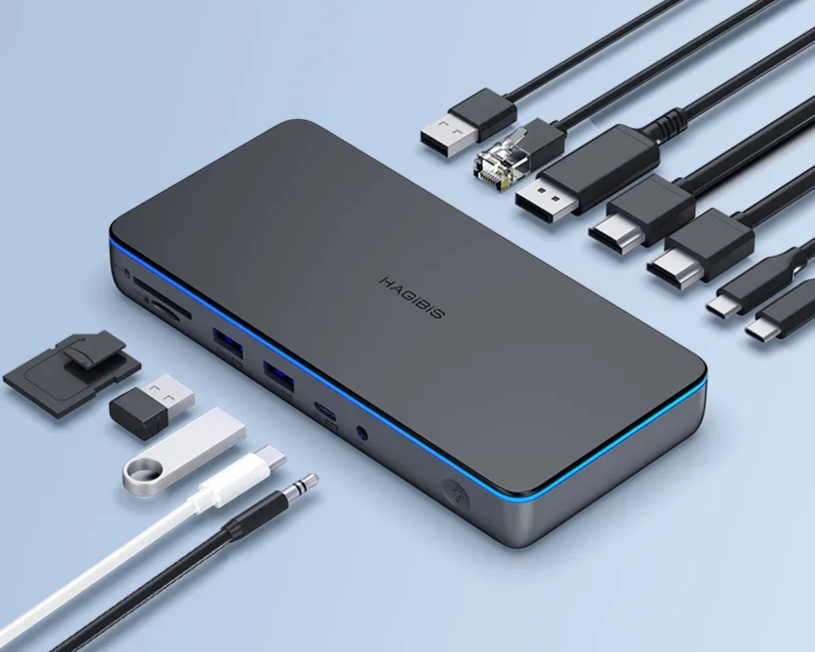USB C Hub CD100 är en adapter från Hagibis som erbjuder full funktionalitet utan gränser. Den stödjer samtidig anslutning och användning av flera gränssnitt, vilket gör det möjligt att expandera, koppla upp sig mot nätverk, ladda och överföra data samtidigt. Produkten är avsedd för användare av Apple-datorer, och kan koppla tre skärmar för att visa olika innehåll, inklusive stöd för datorer med M1- och M2-chip.Hubs konstruktion inkluderar en DisplayLink-chip som löser begränsningar vid multi-skärmvisning och möjliggör friktionsfri omkoppling mellan speglingsläge och utökat läge. Hubben stödjer 8K-upplösning vid 30Hz och 4K vid 60Hz för en klar och detaljerad bildkvalitet. Den har även 100W Power Delivery med skydd mot överspänning. Det innebär att hubben kan ladda anslutna enheter snabbt, även om den faktiska konsumtionen alltid är ≤ 85W då hubben kräver 15W till sin egen strömförsörjning.