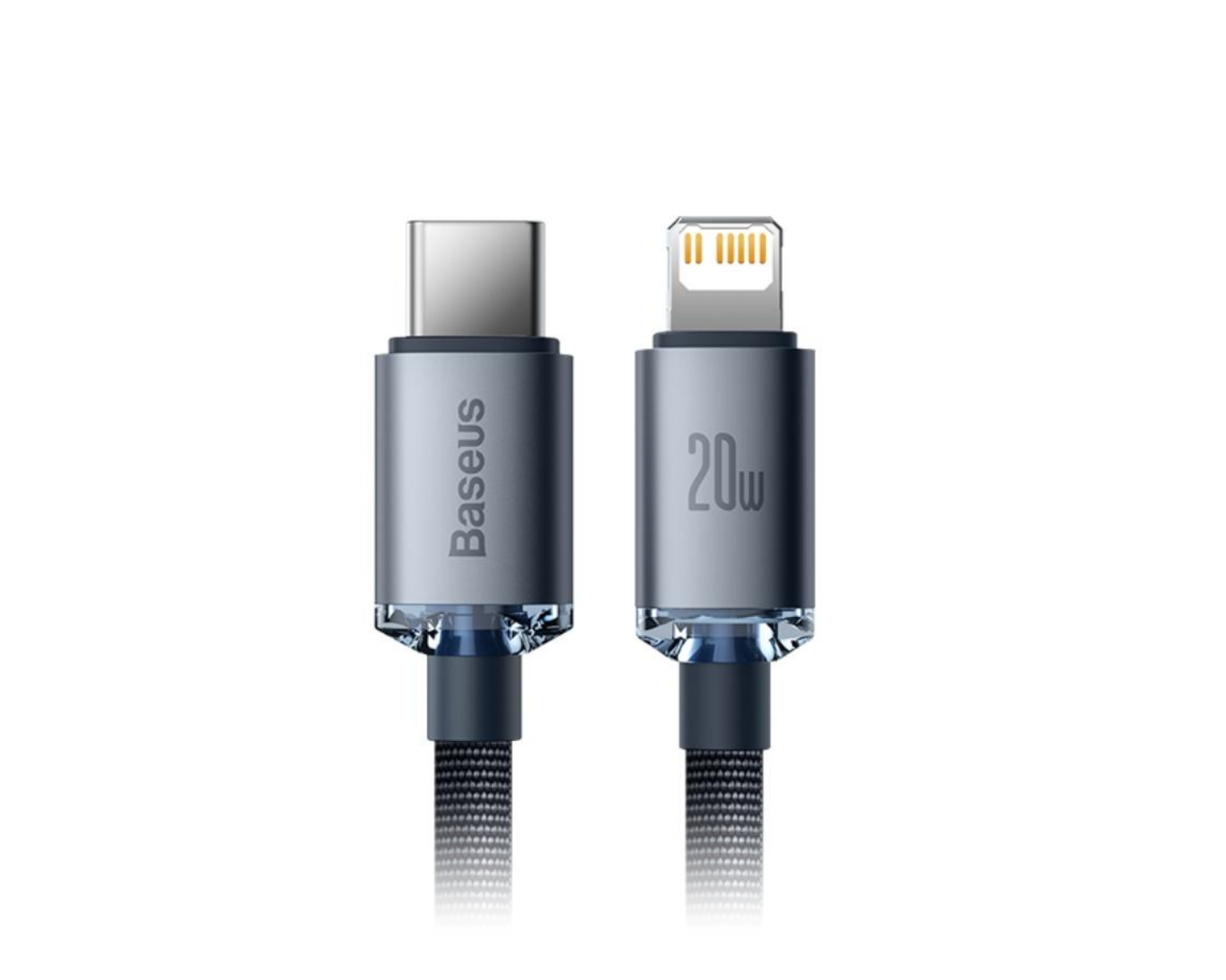 Crystal Shine kabel USB-C till Lightning från Baseus erbjuder funktionalitet och hållbarhet i ett stilrent paket. Denna kabel är designad för snabbladdning med en effekt på 20W och möjliggör samtidigt dataöverföring med en hastighet på 480 Mbps. Den är också konstruerad för att motstå överhettning tack vare intelligent temperaturkontroll, vilket gör den både säker och effektiv.Kabeln är byggd med hjälp av galvaniserade förstärkningar och en ny kärnteknik som minskar den elektriska motståndet, vilket ger snabbare laddning. Dessutom är den tillverkad av ett slitstarkt tyg som förhindrar trassling och är hållbar genom förbättrad SR-skyddsteknik, vilket gör att den klarar av över 10 000 anslutningar. Den eleganta aluminiummaterialet och den blanka finishen ger ett modernt utseende som gör kabeln mer än bara ett tillbehör.