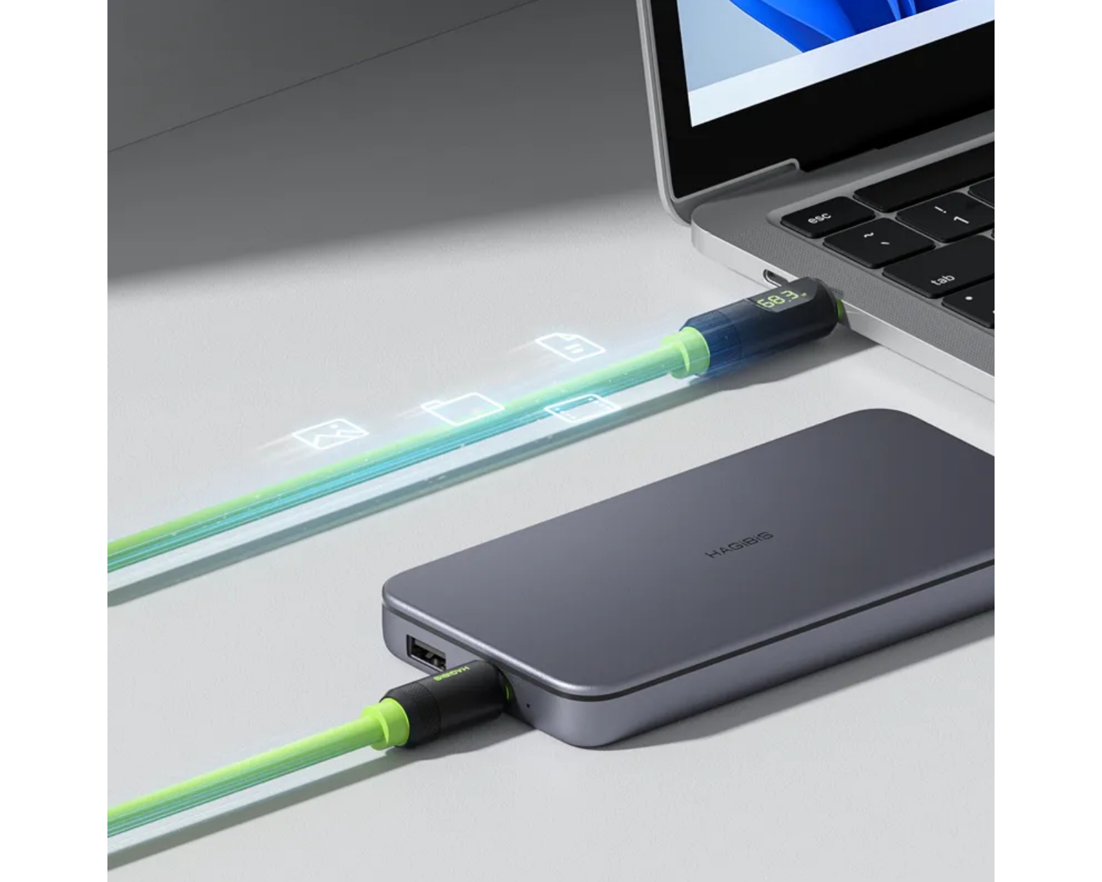 USB4 Kabel SX02 1M är en USB-C-kabel från Hagibis som erbjuder snabb och effektiv laddning samt dataöverföring. Kabeln stödjer laddningshastigheter upp till 240W (48V 5A) och är kompatibel med PD3.1, vilket säkerställer att den fungerar med såväl moderna som äldre enheter. Den kan användas för att ladda allt från smartphones till bärbara datorer.Kabeln är designad för att stödja UHD-upplösning och gör det möjligt att ansluta en laptop till en extern bildskärm med en upplösning upp till 8K@60Hz eller två 4K@60Hz-skärmar samtidigt, förutsatt att enheterna stödjer DP Alt Mode. Med en överföringshastighet på upp till 40Gbps, som följer USB4.0-standarden, kan användare snabbt flytta stora filer, inklusive musik och filmer. Kabeln är också bakåtkompatibel med USB4-enheter som stödjer 20Gbps.