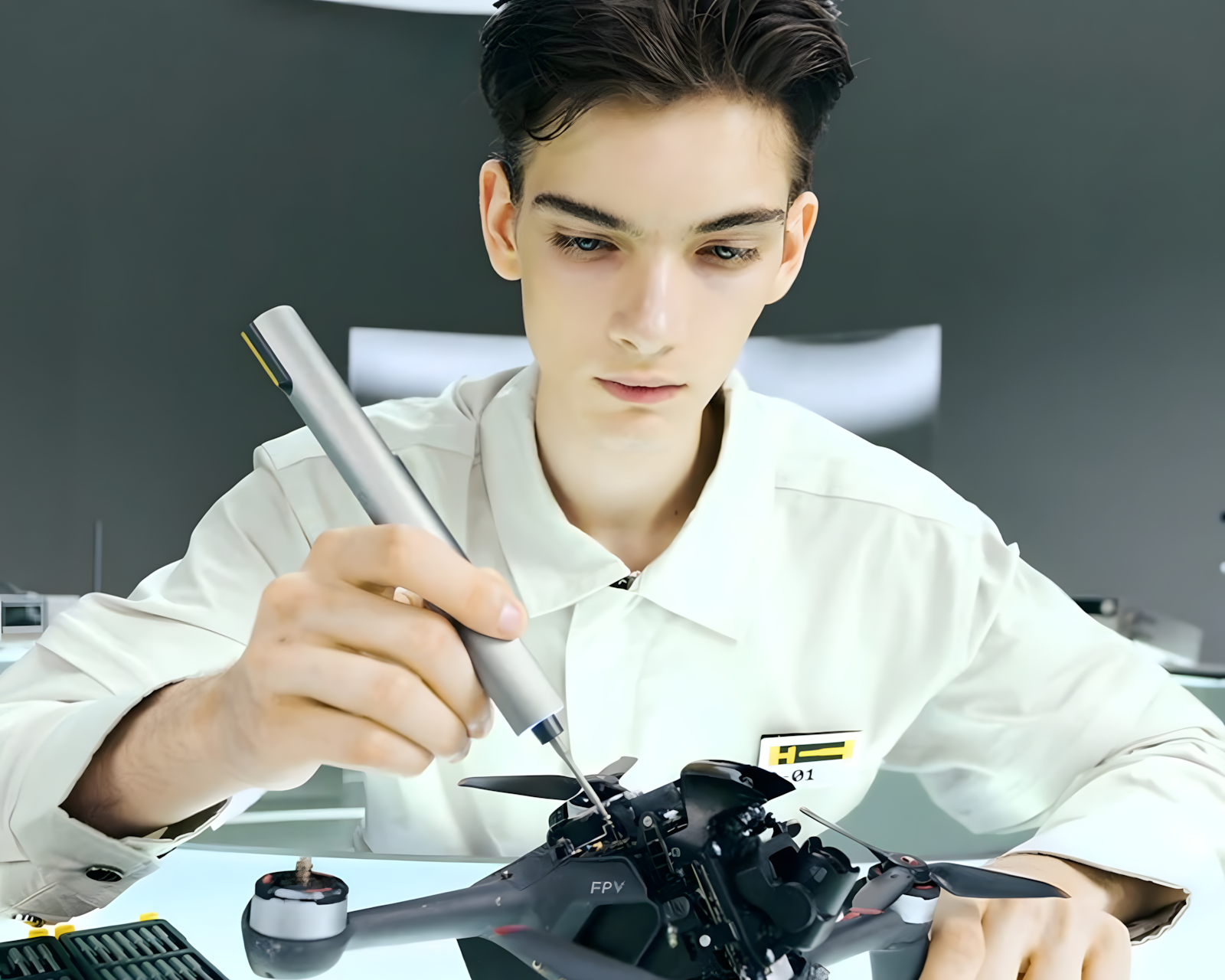 SNAPBLOQ S-A01 är en elektrisk precision skruvmejsel från HOTO som är utformad för att hantera M3-skruvar med precision och lätthet. Den har en effektiv vridmomentkapacitet på 0.5Nm och erbjuder tre justerbara vridmomentinställningar (0.05/0.35/0.5Nm) för exakt styrning. Detta verktyg är lämpligt för både hobbyister och professionella som arbetar med elektronik eller reparationsprojekt.Skruvmejseln är utrustad med en borrlös motor, vilket ger överlägsen stabilitet och hög effektivitet, samt tyst drift och jämn prestanda. Den är byggd med en ergonomisk, halkfri kropp och intuitiva knappar som ger en optimal skruvdragningupplevelse. En inbyggd cirkulär LED-belysning gör det möjligt att arbeta i trånga utrymmen genom att lysa upp arbetsområdet. Med ett 800mAh batteri kan enheten användas i upp till 60 minuter på en enda laddning, vilket gör den idealisk för långvarig användning. Den laddas enkelt med en typ-C-kabel, vilket förenklar processen för användaren.
