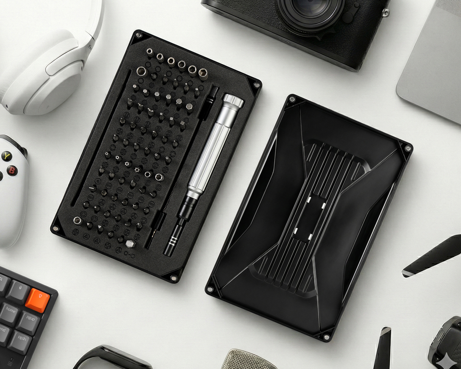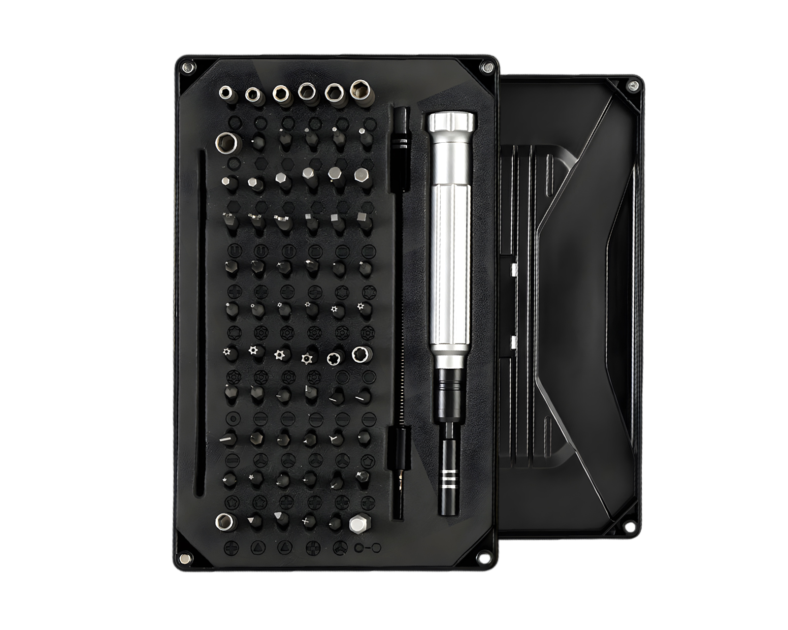 Detta precisionsmejselset och reparationskit för elektronik från MaxMount är en komplett 89-delad verktygssats, framtagen för att du ska kunna laga allt från smartphones till spelkonsoler och laptops med proffsresultat. Kitet innehåller CRV-precisionsbits av högsta kvalitet som täcker alla tänkbara behov – särskilt för pilliga reparationer av iPhone, MacBook, bärbara datorer och annan modern elektronik.Det ergonomiska aluminiumhandtaget har en räfflad anti-glid-yta och är resistent mot rost, vilket ger både precision och komfort under långa arbetspass. Utöver bitsen innehåller kitet oumbärliga specialverktyg som pincetter, bändverktyg (spudgers) och ett antistatband, vilket skyddar känsliga komponenter vid demontering. Allt levereras i ett robust och organiserat fodral som gör det enkelt att hålla ordning på varje liten del.